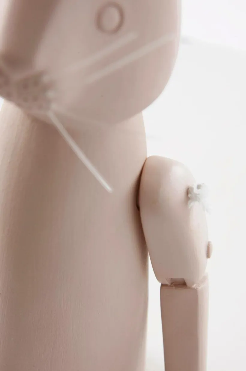 Söt kanin av polyresin som kan sitta på en kant. Kaninens axel och höft är ledade.
