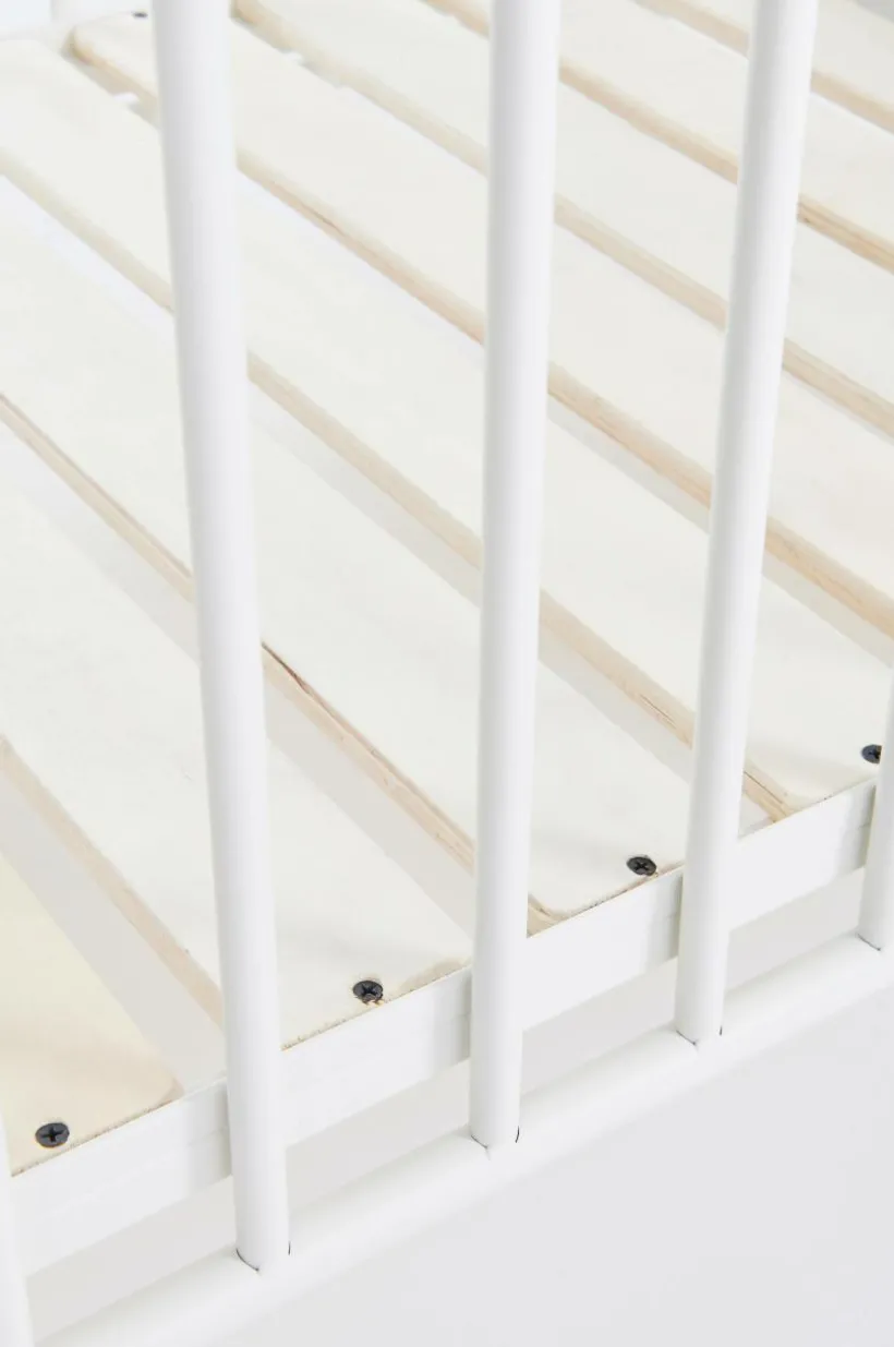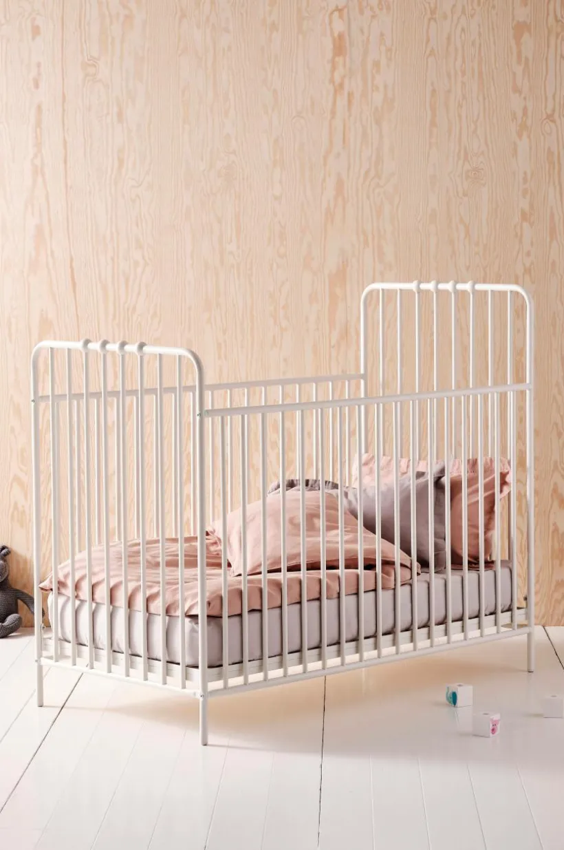 BEXLEY MINI är fin och välarbetad spjälsäng av pulverlackerad metall. En klassisk modell som står sig över tid. Ribbotten i plywood gör att luften kan cirkulera och sängen blir välventilerad. Sängbotten kan monteras i tre olika nivåer så du kan anpassa sovhöjden efter behov. Det är bekvämt och praktiskt att ha barnet högst upp i början, men när barnet kan sitta själv ska det nedersta läget användas för att förhindra fallolyckor. Sängen är testad så du kan vara helt trygg i att ditt barn sover säkert.