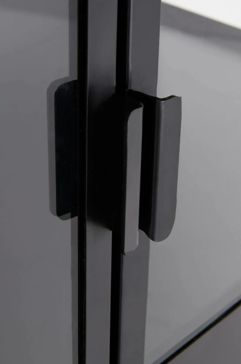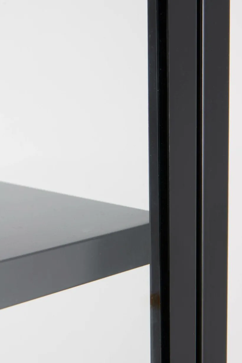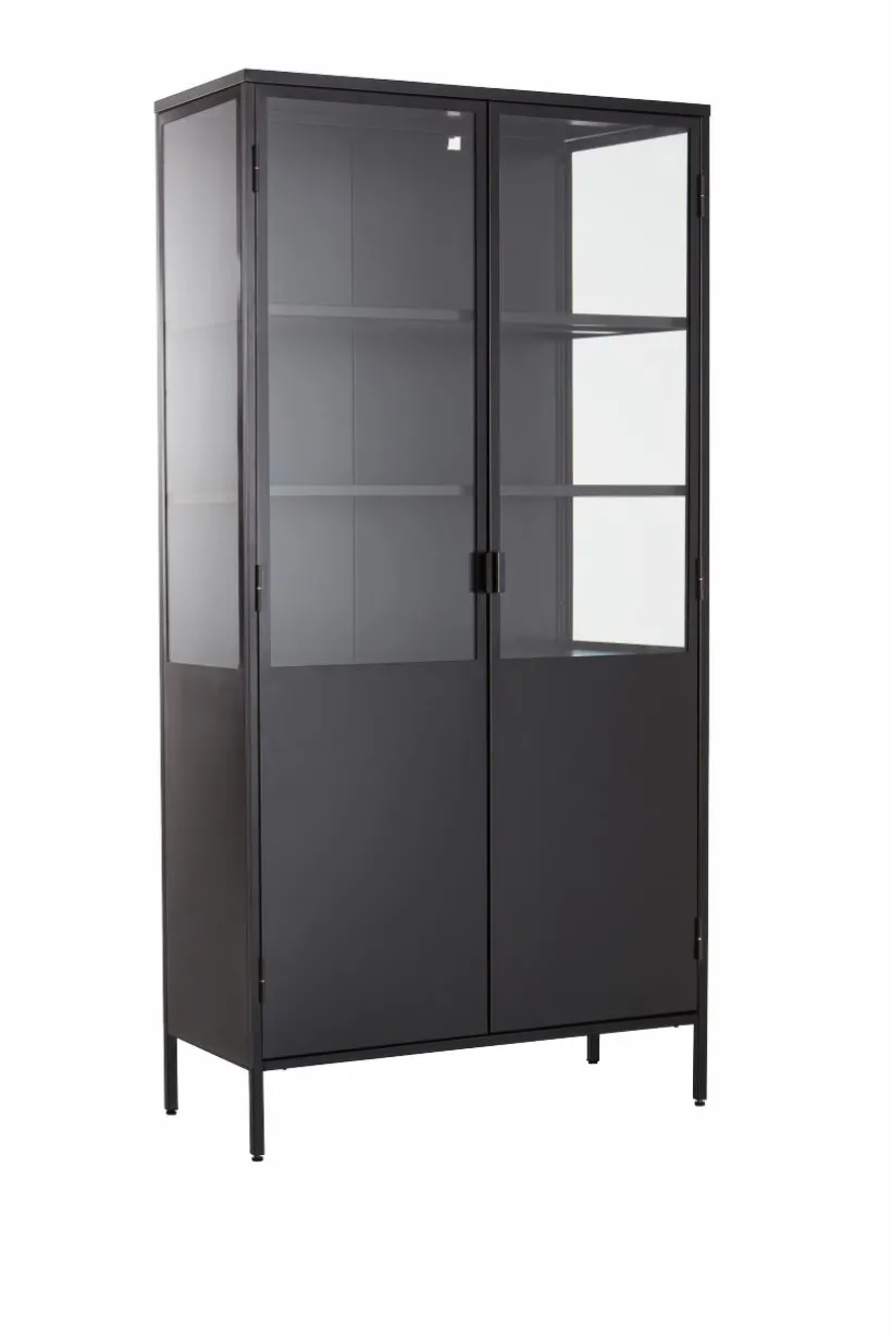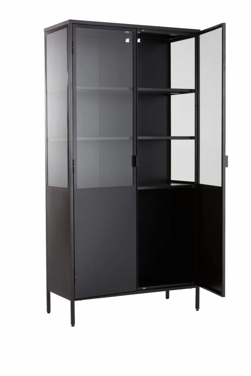 Vitrinskåp i plåt med dörrar av härdat glas. BLACKBURN har praktiska, djupa hyllor som gör att du får plats med mycket. Viss montering krävs, monteringsanvisningar medföljer.