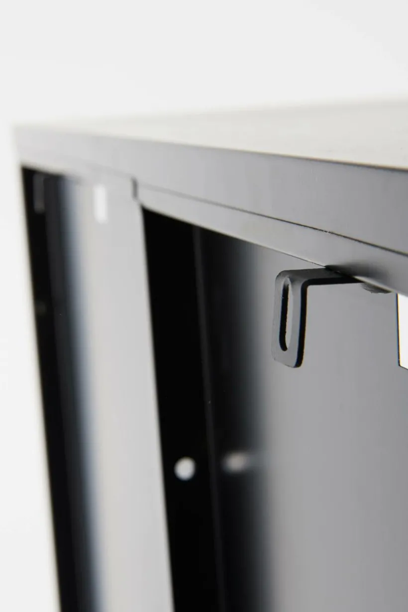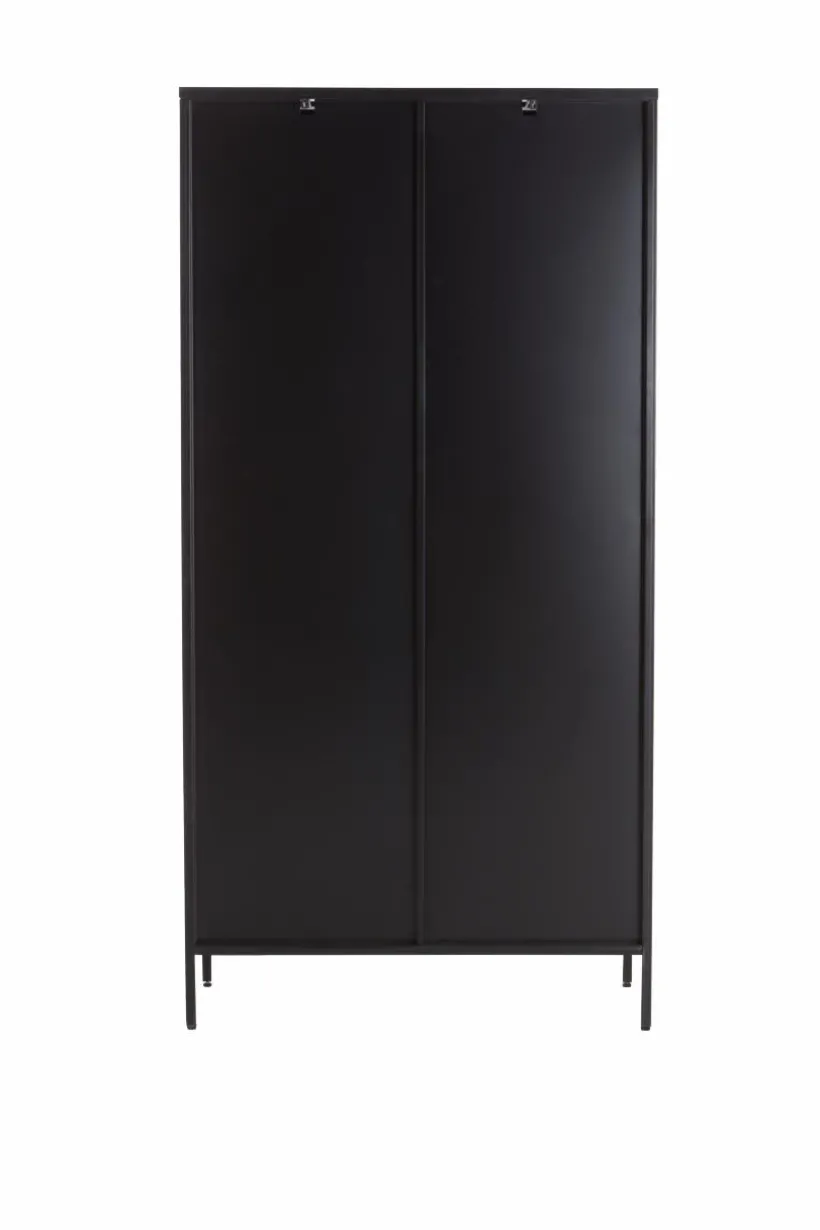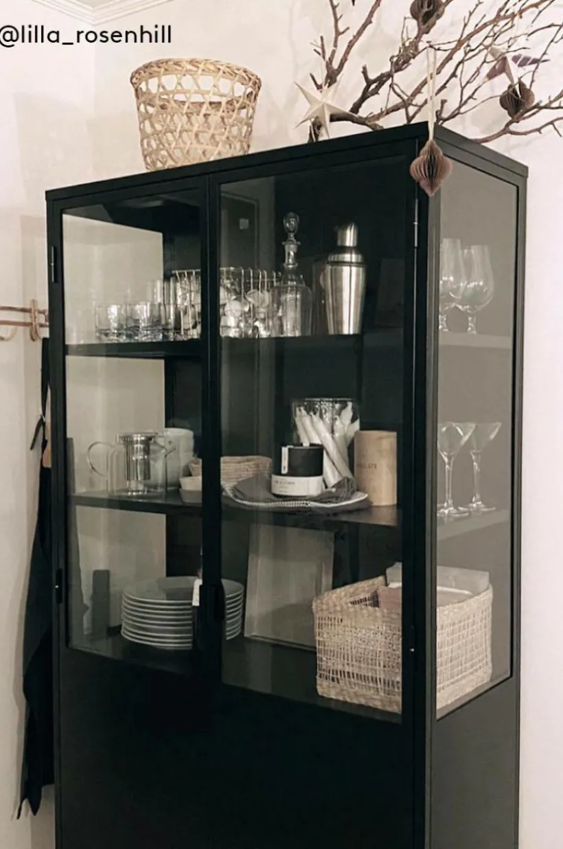 Vitrinskåp i plåt med dörrar av härdat glas. BLACKBURN har praktiska, djupa hyllor som gör att du får plats med mycket. Viss montering krävs, monteringsanvisningar medföljer.