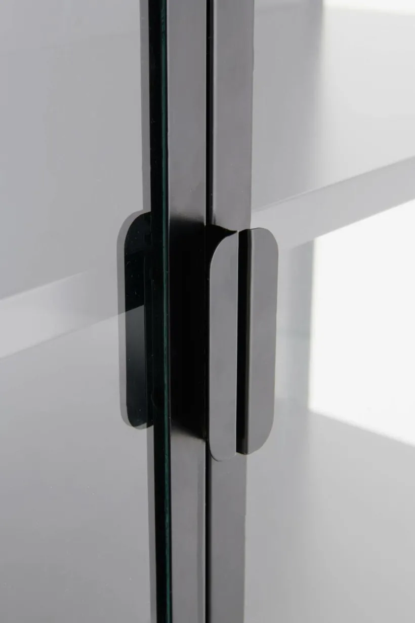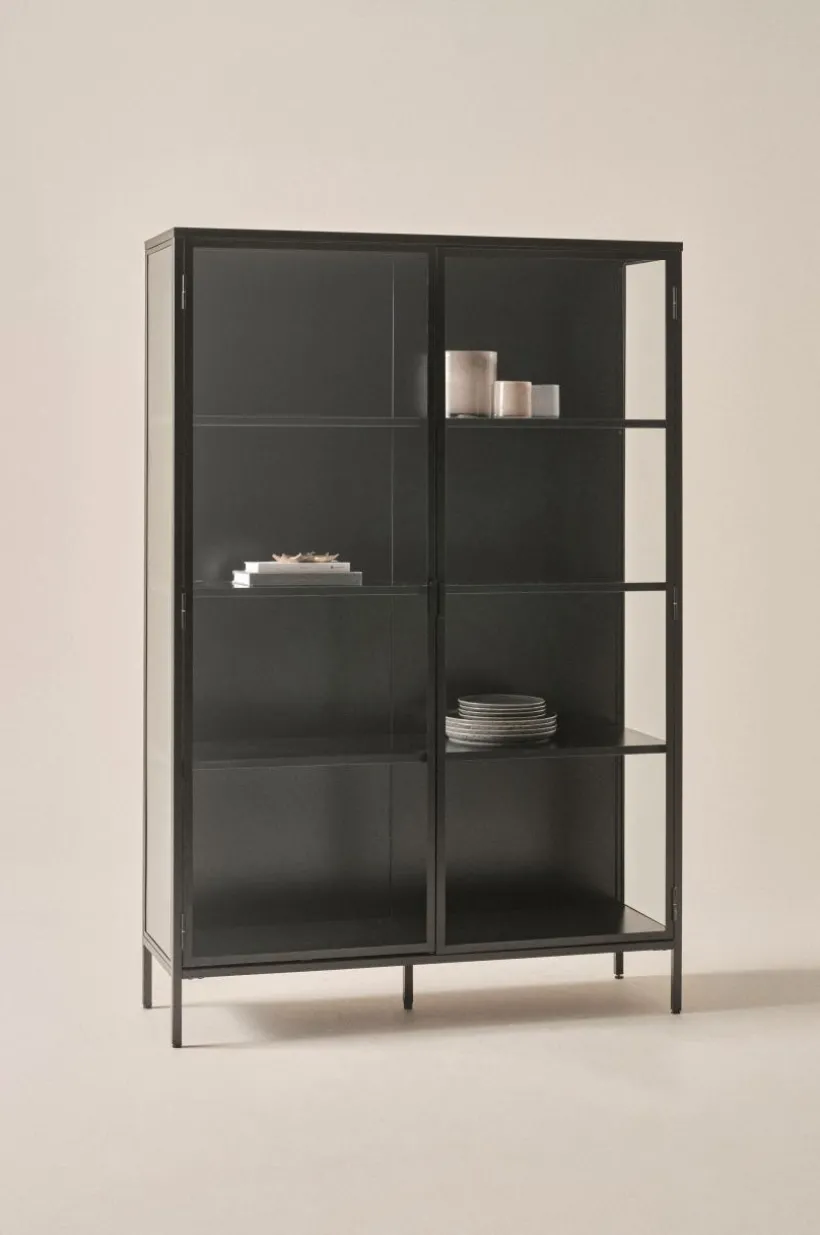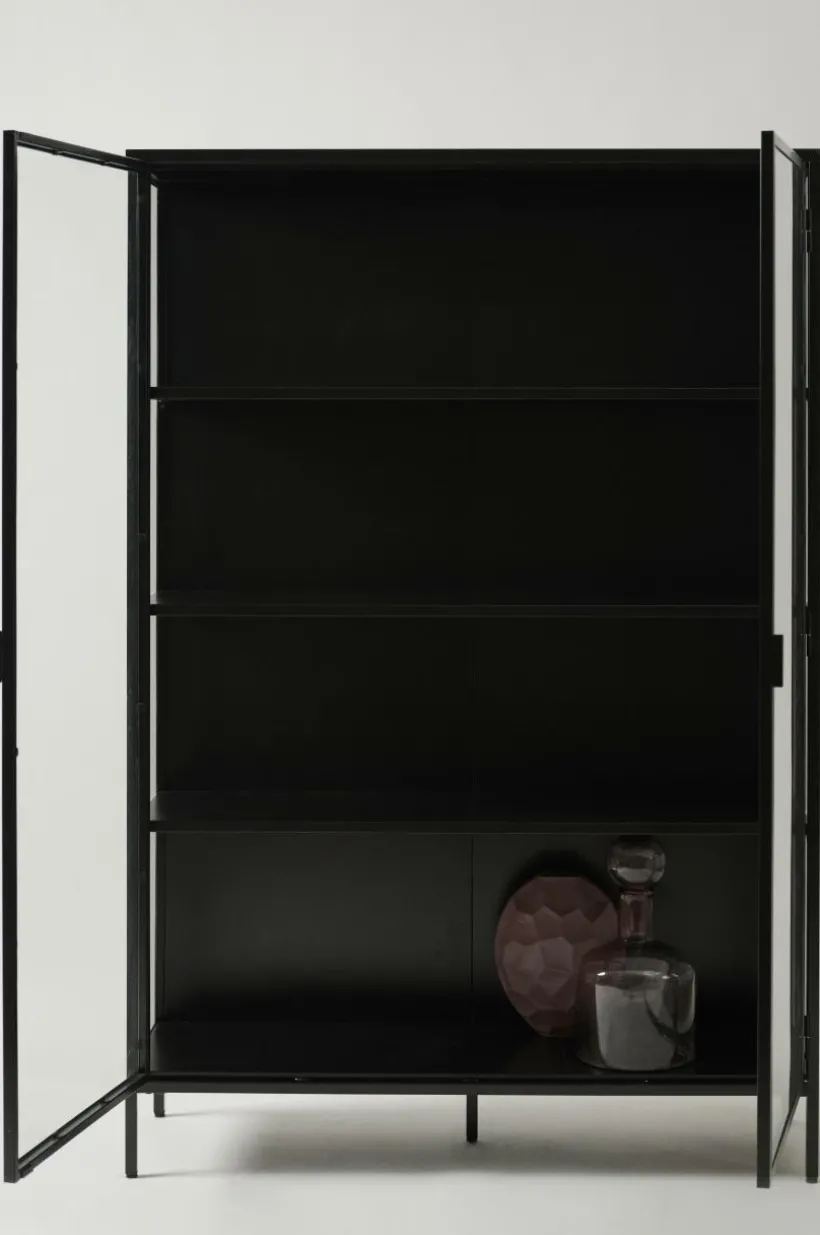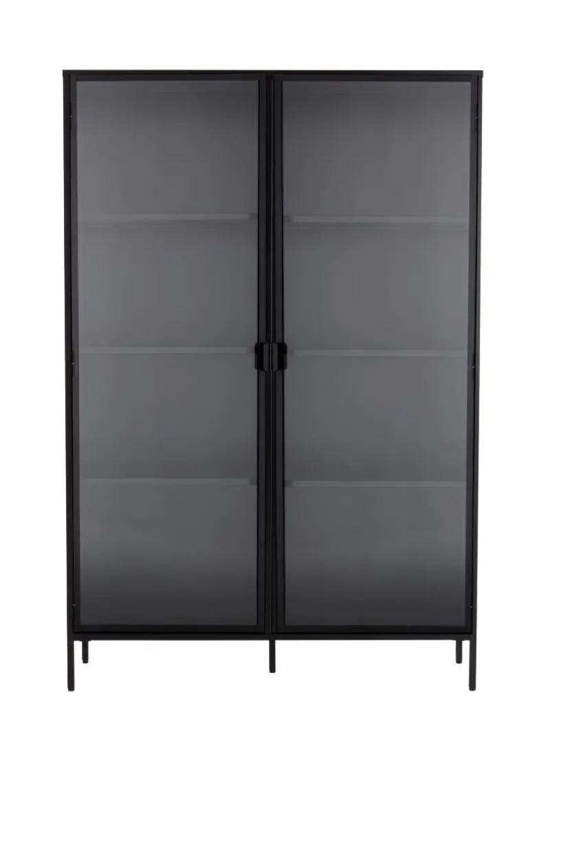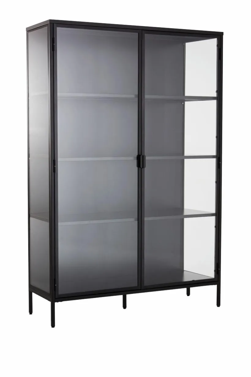 Vitrinskåp i plåt med dörrar av härdat glas. BLACKBURN har praktiska, djupa hyllor som gör att du får plats med mycket. Viss montering krävs, monteringsanvisningar medföljer.