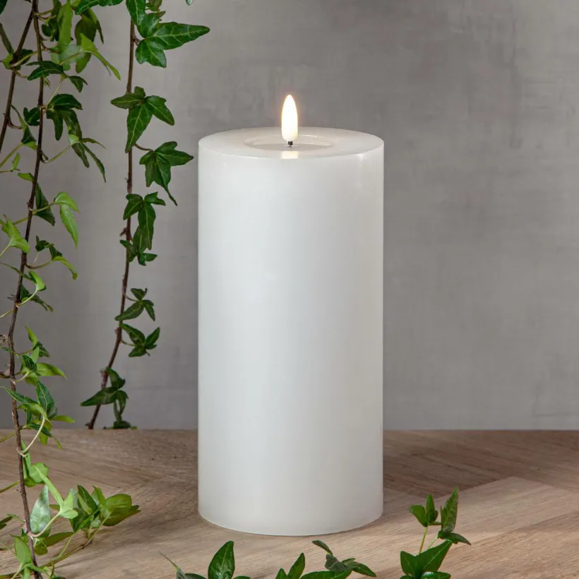 Flamme flow big är ett elektriskt blockljus med vår verklighetstrogna låga flamme och med en drifttid på 2500 timmar. Detta ljus har en blank nedsänkning under lågan, denna yta ser ut som flytande vax vilket gör ljuset ännu mer verklighetstroget. Ljuset är 10 cm i diameter och höjden 20 cm för vaxdelen och ca 22,5 cm totalhöjd med lågan. Detta ledljus blir en vacker dekoration, både ensamt och i en grupp tillsammans med andra ljus från vår serie flamme. Det har en timerfunktion och när strömbrytaren är i timerläge lyser ljuset i ca 400 dagar med en vacker realistisk låga i varmvitt. Den drivs av 2 c-batterier, dessa ingår inte.