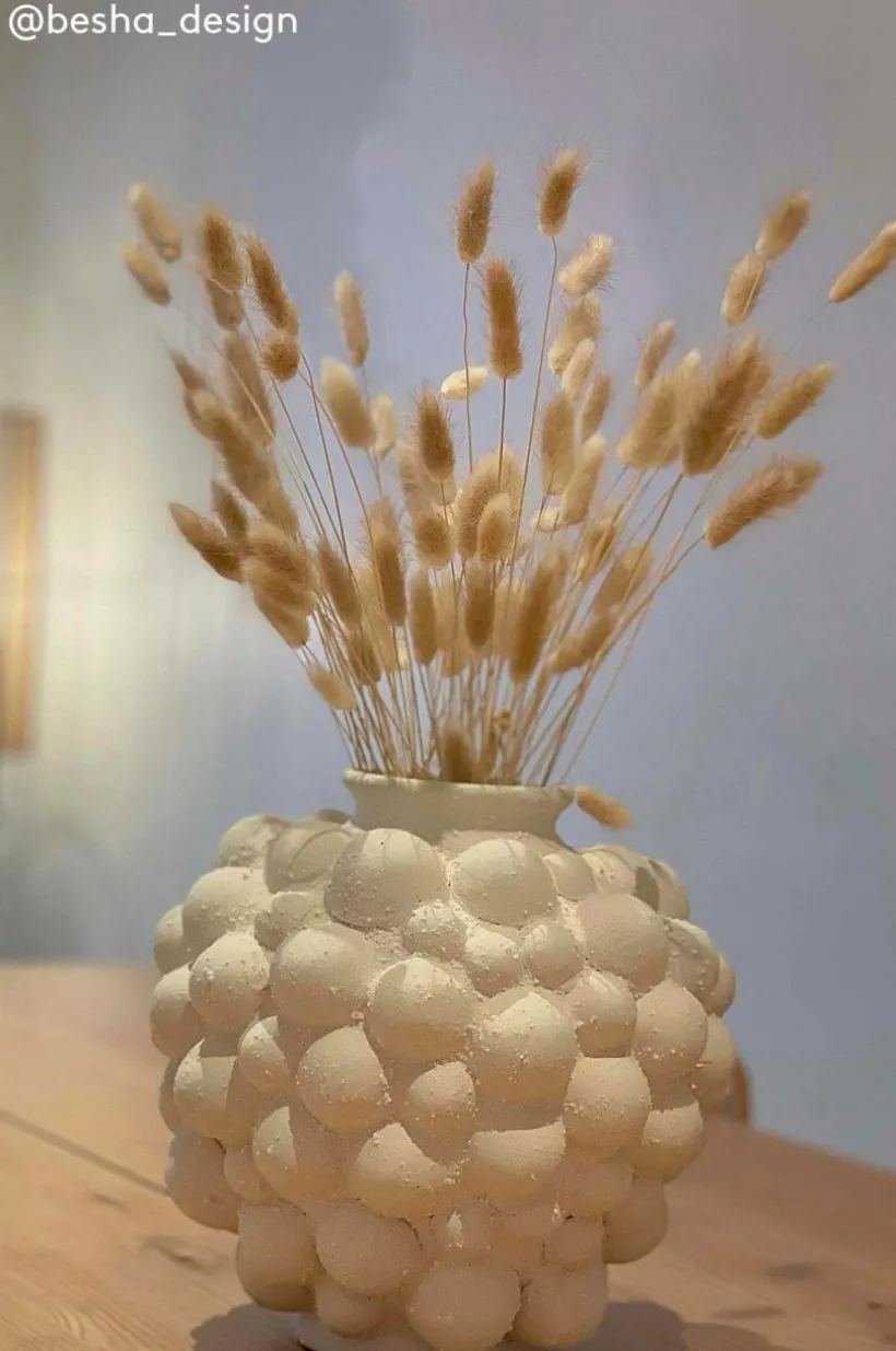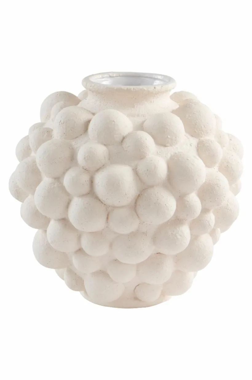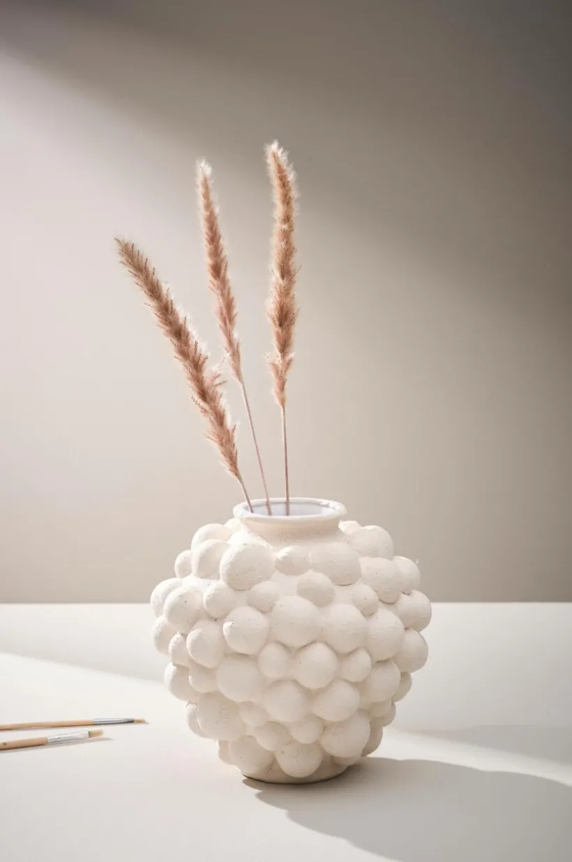 Handgjord dekorationsvas av keramik. En stilren vas med matt finish som påminner om sten. Insidan är glaserad. Viss avvikelse kan förekomma eftersom vasen är handgjord. Keramik kan släppa igenom fukt.