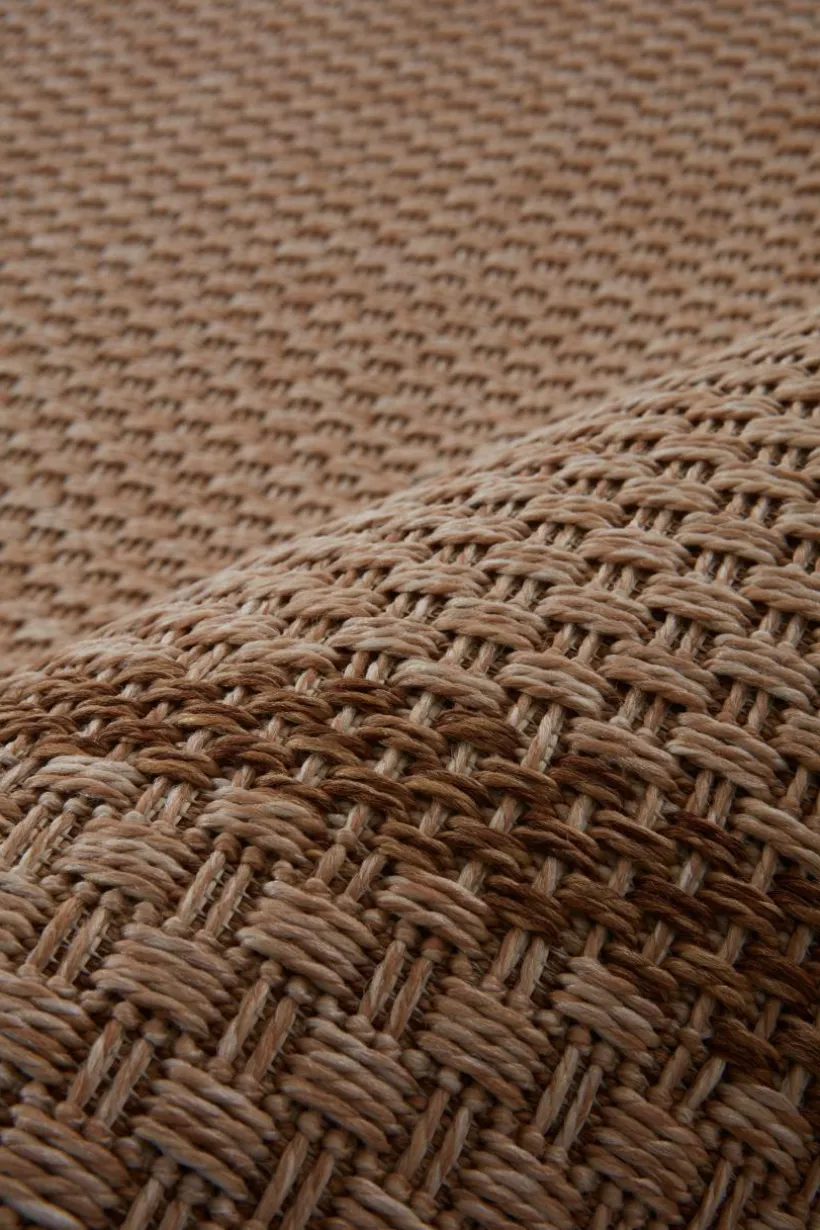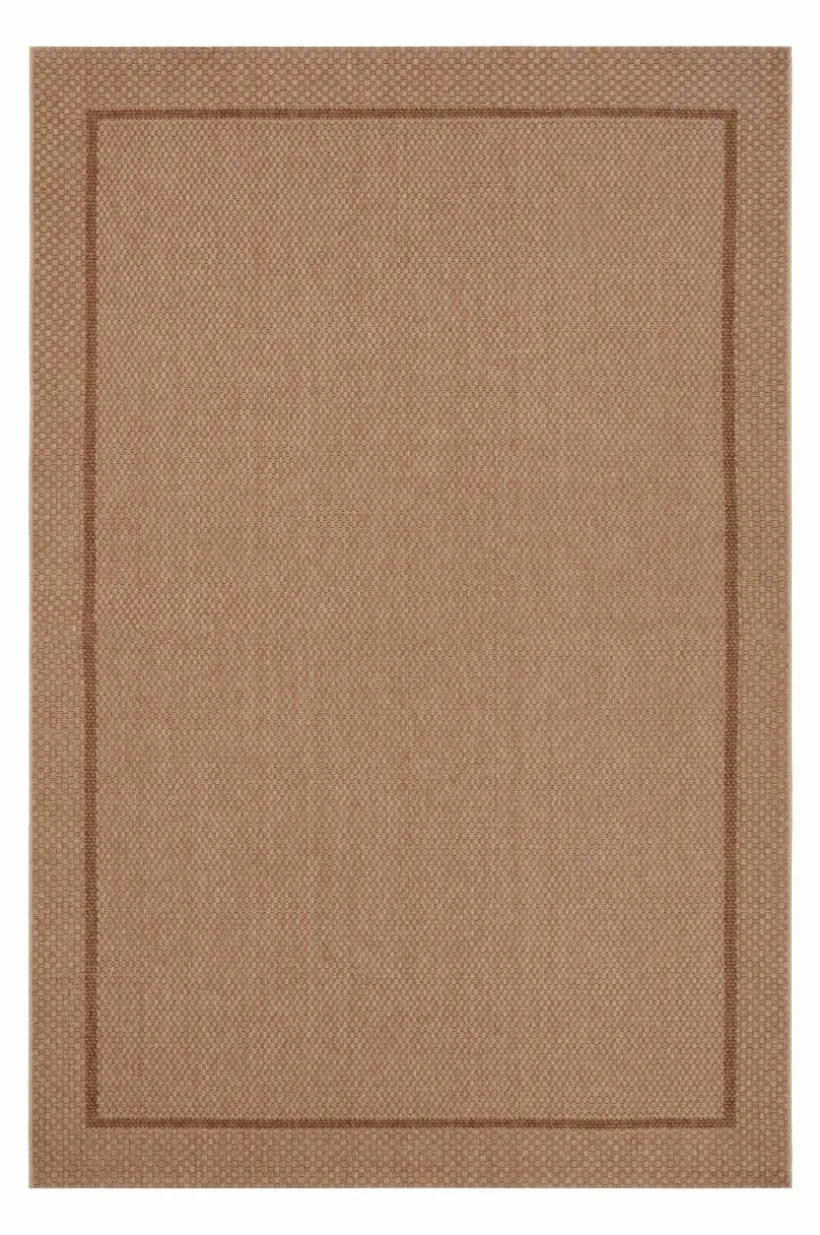 Slätvävd matta av polypropylen. Mattan har en bred bård runt om som avgränsas av en rand i mörkare nyans. En matta under utemöbeln ger härlig rumskänsla. Den tåliga kvalitén och det faktum att den tål vatten gör att mattan passar i många rum där den utsätts för lite mer slitage. Mattan är mycket lättskött. Eftersom mattan tål vatten och inte möglar kan den med fördel även användas utomhus. Tjocklek: 0,6 cm. 1450 g/m².