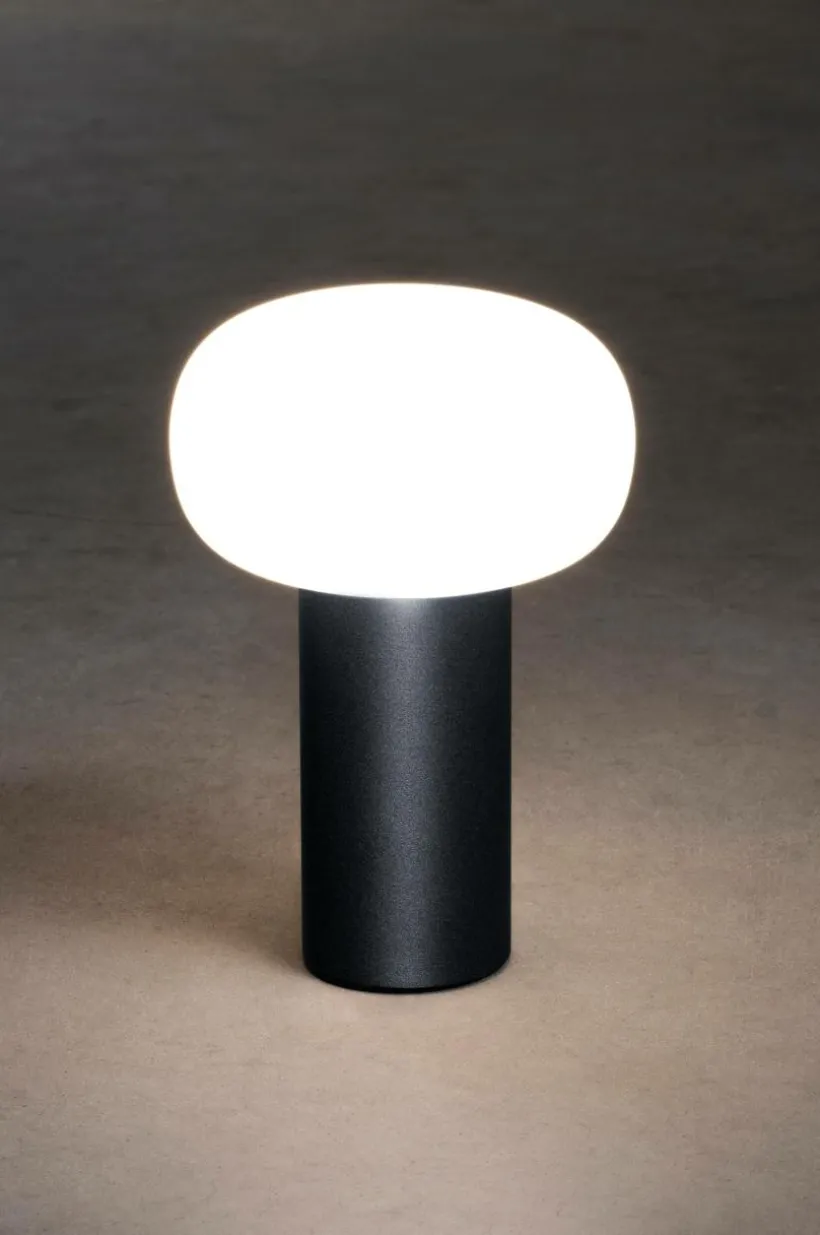 Antibes är en stilren bordslampa med glasskärm ochställbar belysning där man kan välja färgtemperatur 2700/3000/4000k+rgb och är dimbar. Den passar lika bra inne i vardagsrummet som på uteplatsen. Laddas via usb och har en batteritid på ca 9 timmar vid full ljusstyrka. Av/på knapp undertill. Lackad aluminium. Höjd 19 cm.