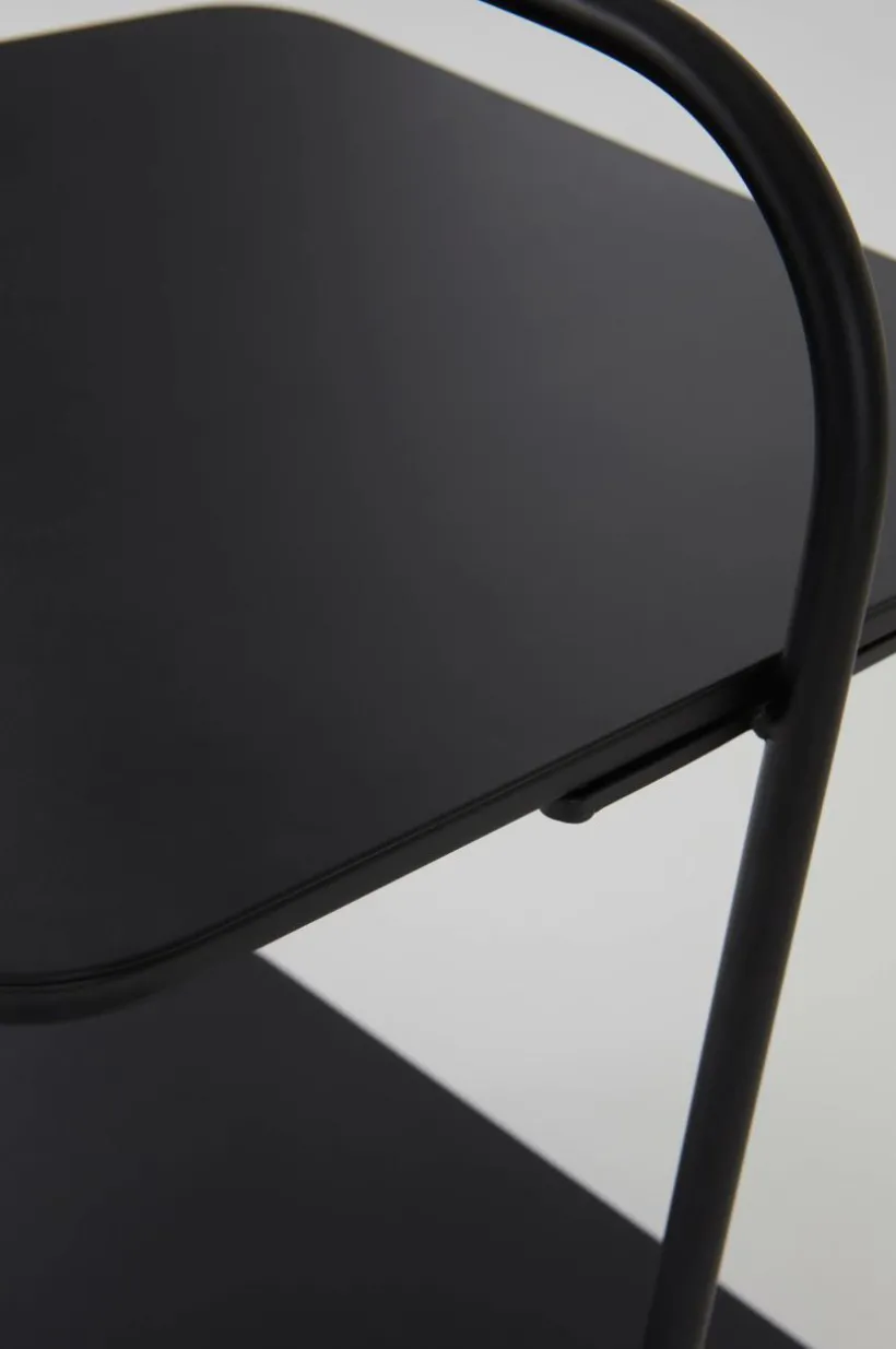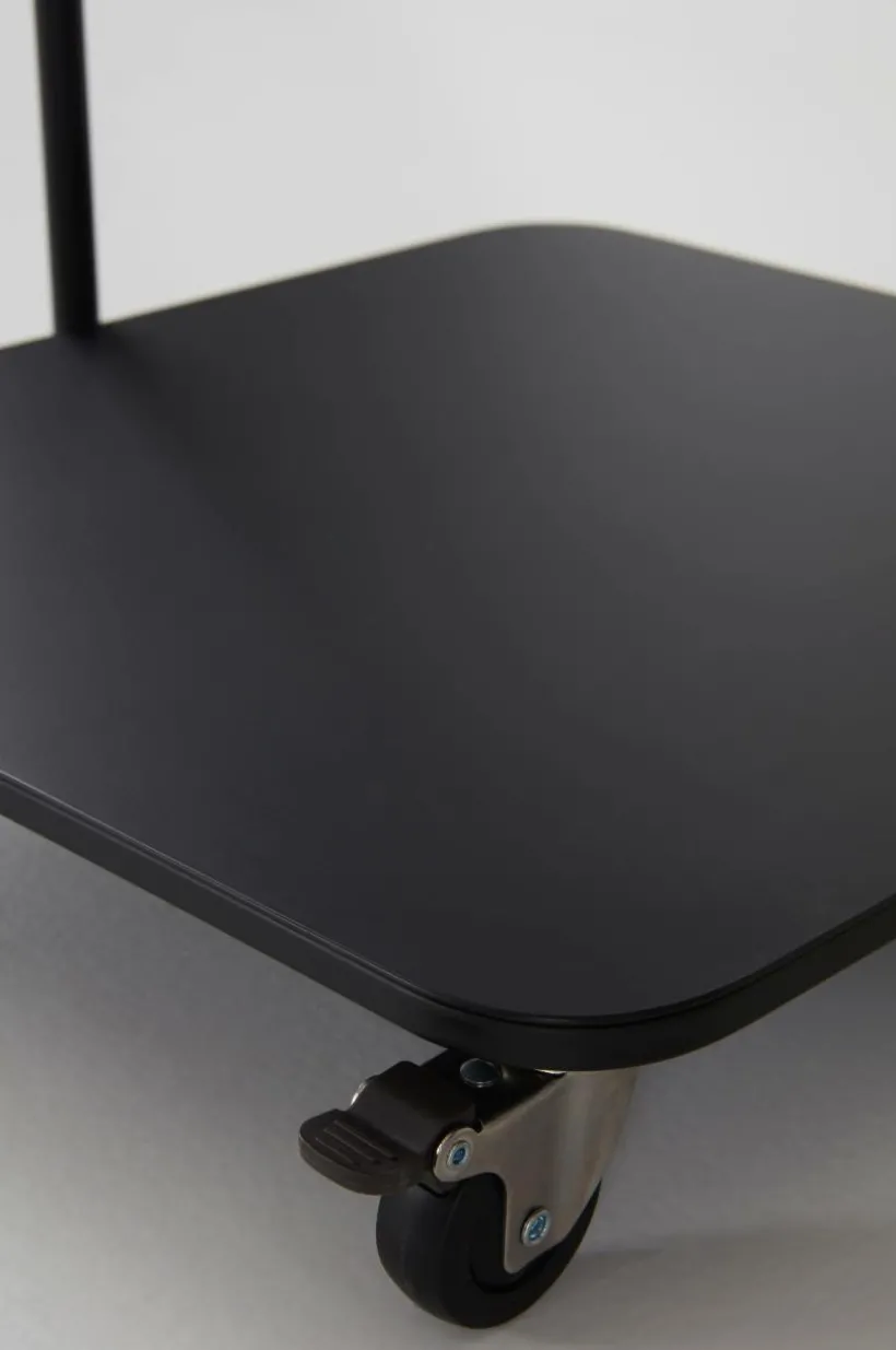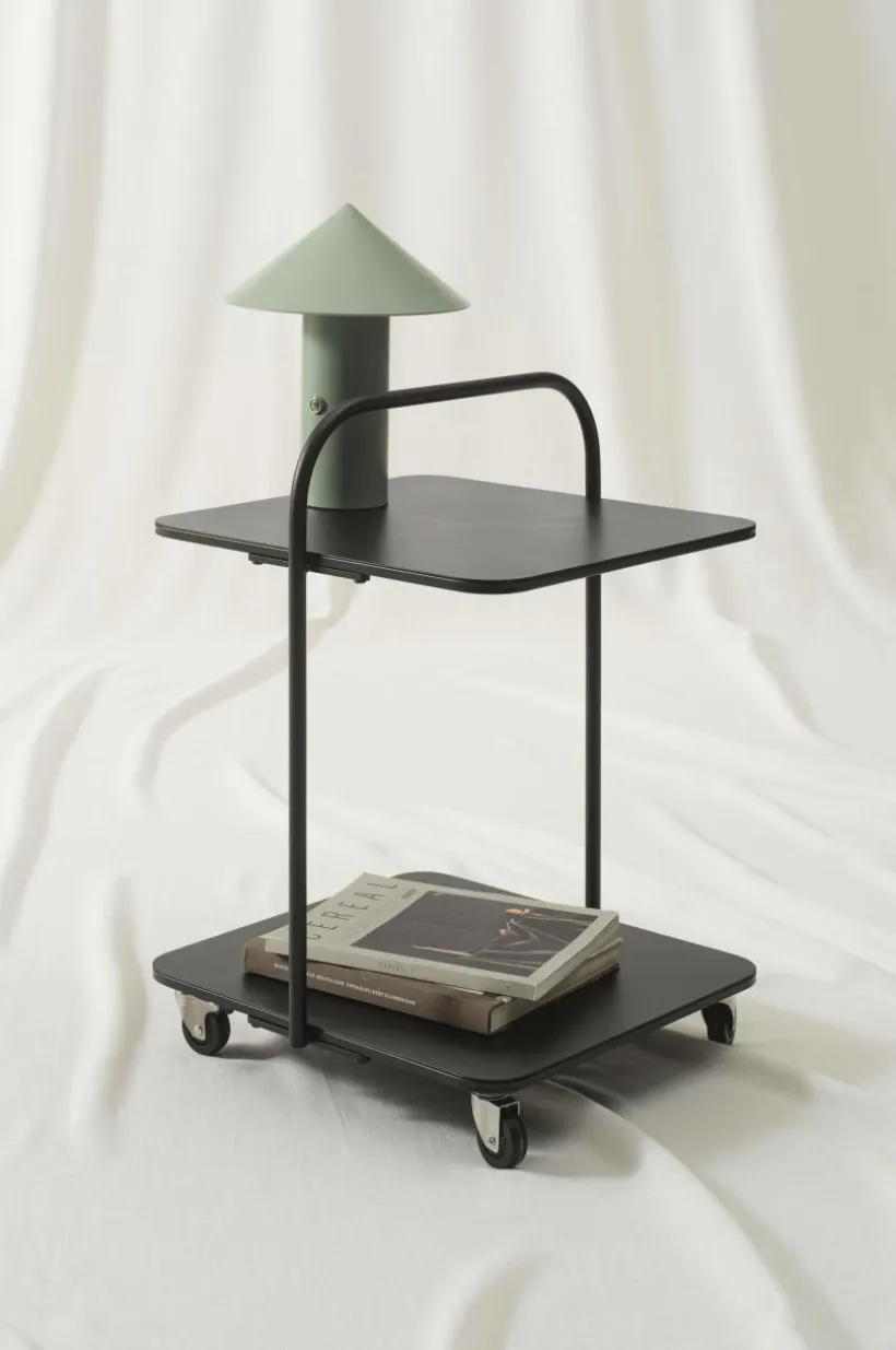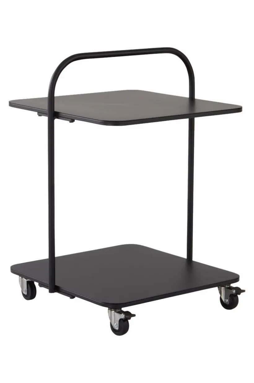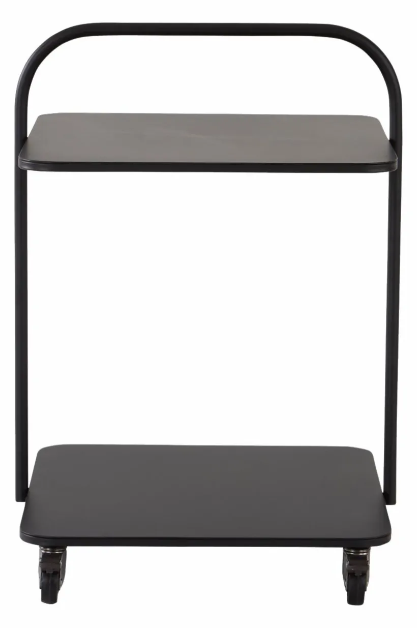 Sidobord på hjul, med en avlastningshylla nedtill och ett handtag upptill. Den praktiska modellen öppnar för många användningsområden. Sidobordet är av järn med pulverlackerad yta. Du kan enkelt flytta med det tack vare de fyra hjulen, och två av dessa kan låsas så bordet står stilla. CLYDE har flexibel användning och passar som sidobord vid soffan eller varför inte som sängbord eller pysselbord som enkelt rullas åt sidan när det inte används. Viss montering krävs. Monteringsanvisning medföljer.