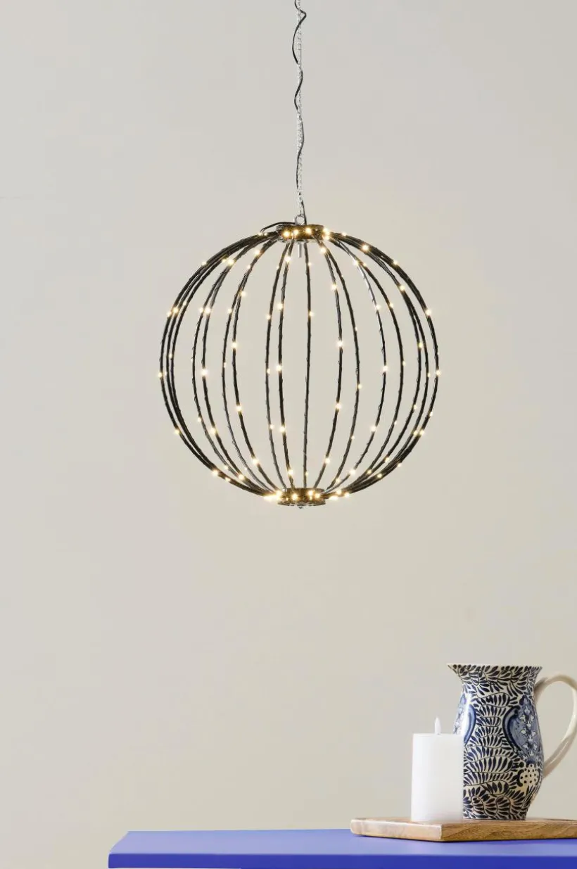 Hopfällbar hängande dekoration för din uteplats eller trädgård. Dekorationen har 126 st LED-ljuspunkter som sprider ett varmvitt sken, samt chaser funktion med 8 olika funktioner. Fästs med en medföljande kedja och krok för en enkel upphängning. Svart anslutningskabel, sladdlängd 5 m.