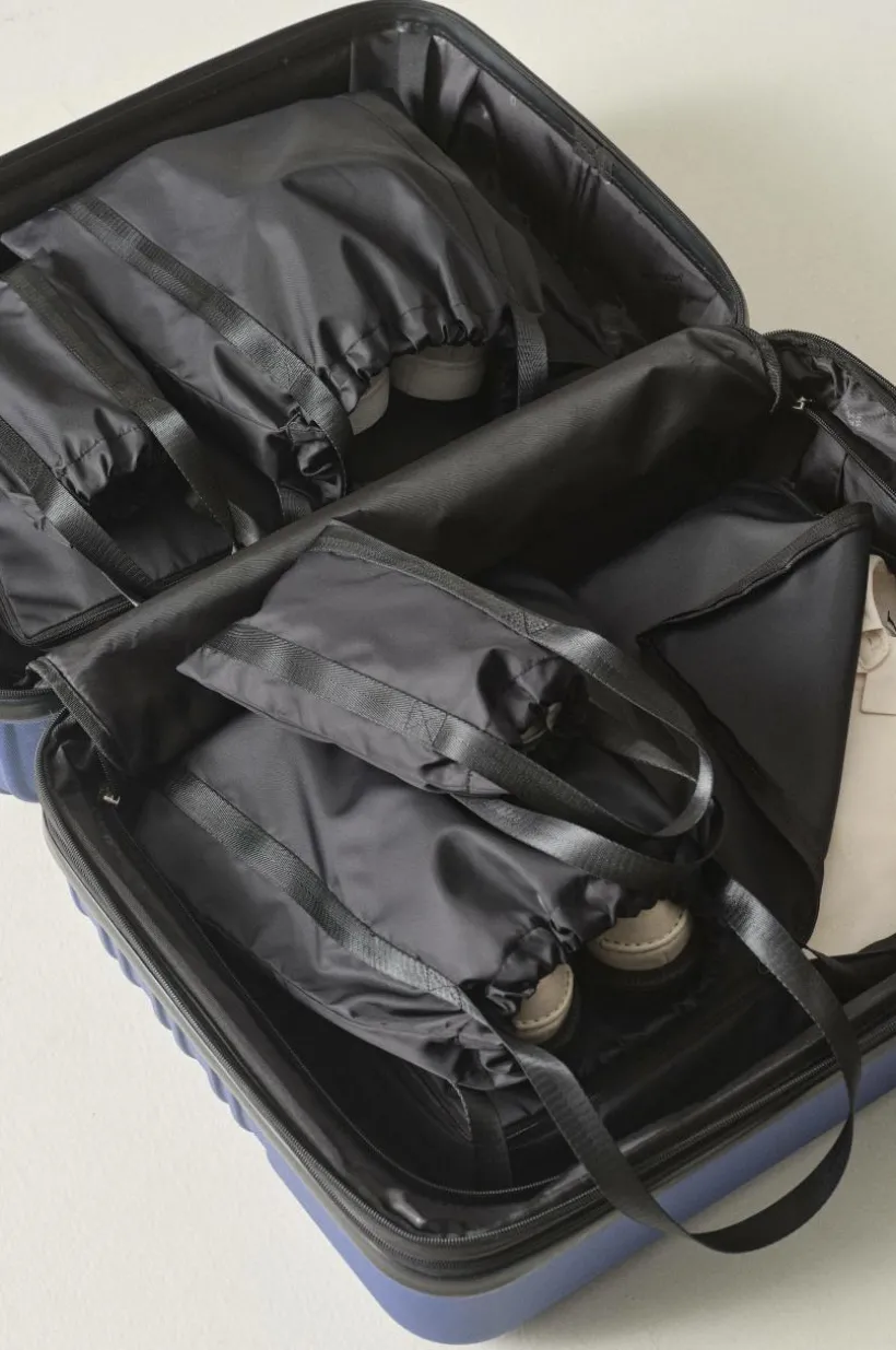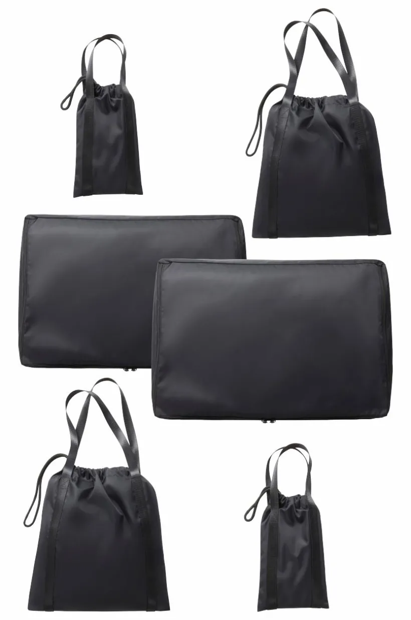 Reseset med 6 väskor i tre olika storlekar, idealiska att packa i och sedan lägga i resväskan. Väskorna är av polyamid varav hälften kommer från återvunnet material. De är vattenavvisande genom en för miljön bättre behandling. Den större väskan stängs med dragkedja, de två modellerna som har handtag stängs med dragsko. Varje set innehåller sex väskor i tre olika storlekar, två i varje storlek.