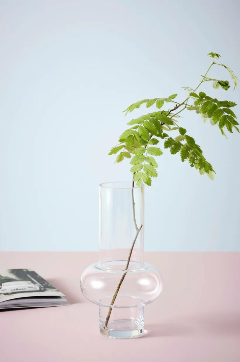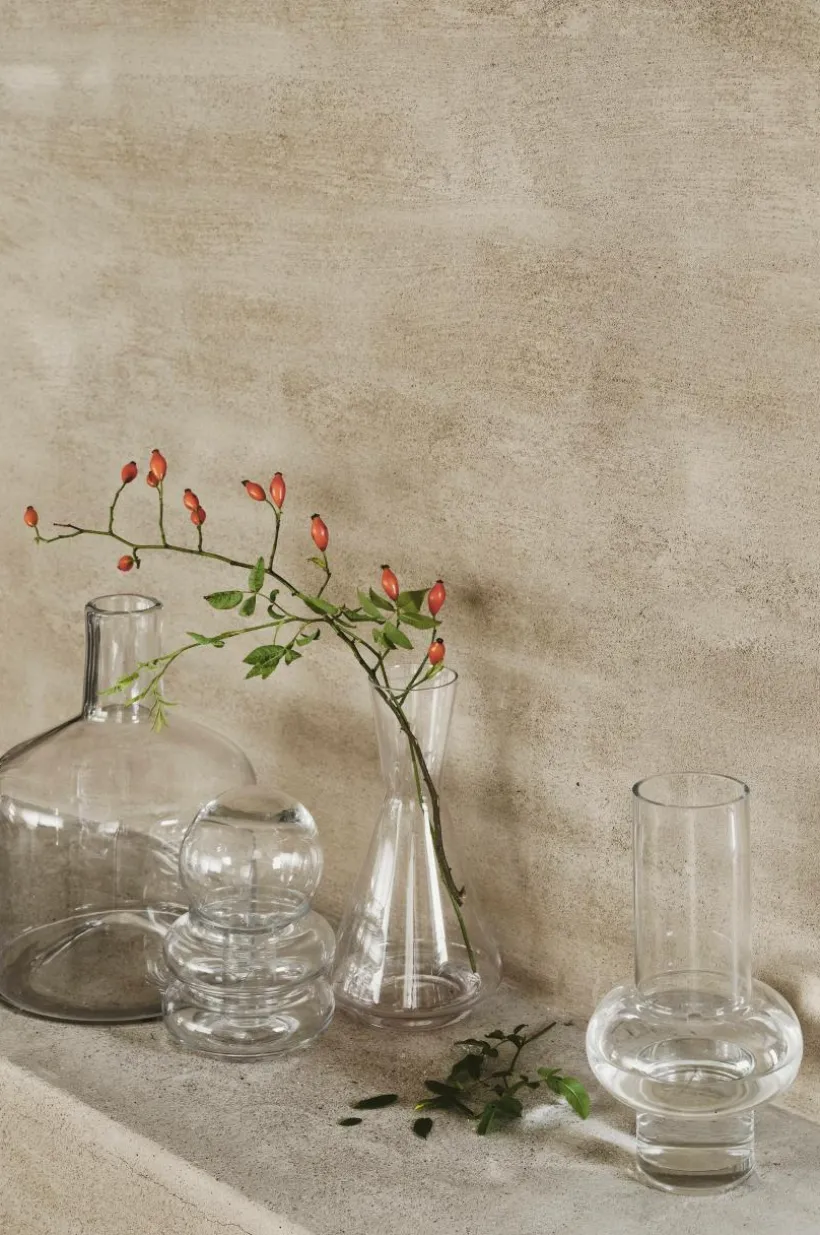 Vackert formad dekorationsvas av glas. En handgjord vas som passar fint till hyacinter. Visar dekorativt både löken och dess rötter.