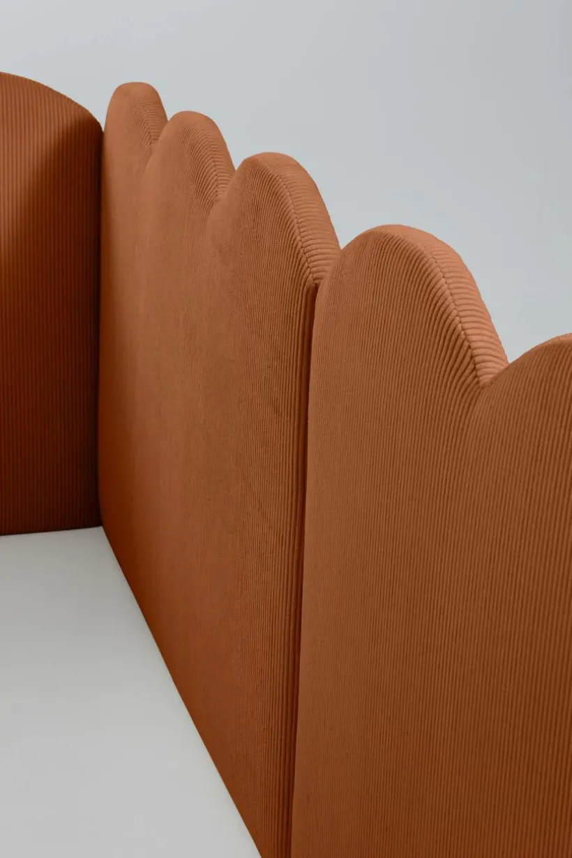 Sänggavel BURLEY har en elegant design i tre delar för att skapa en mysig sänghörna. Placera en del bakom sänggaveln och två längs väggen för att få en inramad look. BURLEY skyddar väggarna från fläckar och förbättrar sängens komfort. De lekfullt formade ändarna och den mjuka stoppningen ger en charmig touch. Ett lättanvänt väggfäste på baksidan säkerställer enkel placering mellan sängen och väggen.