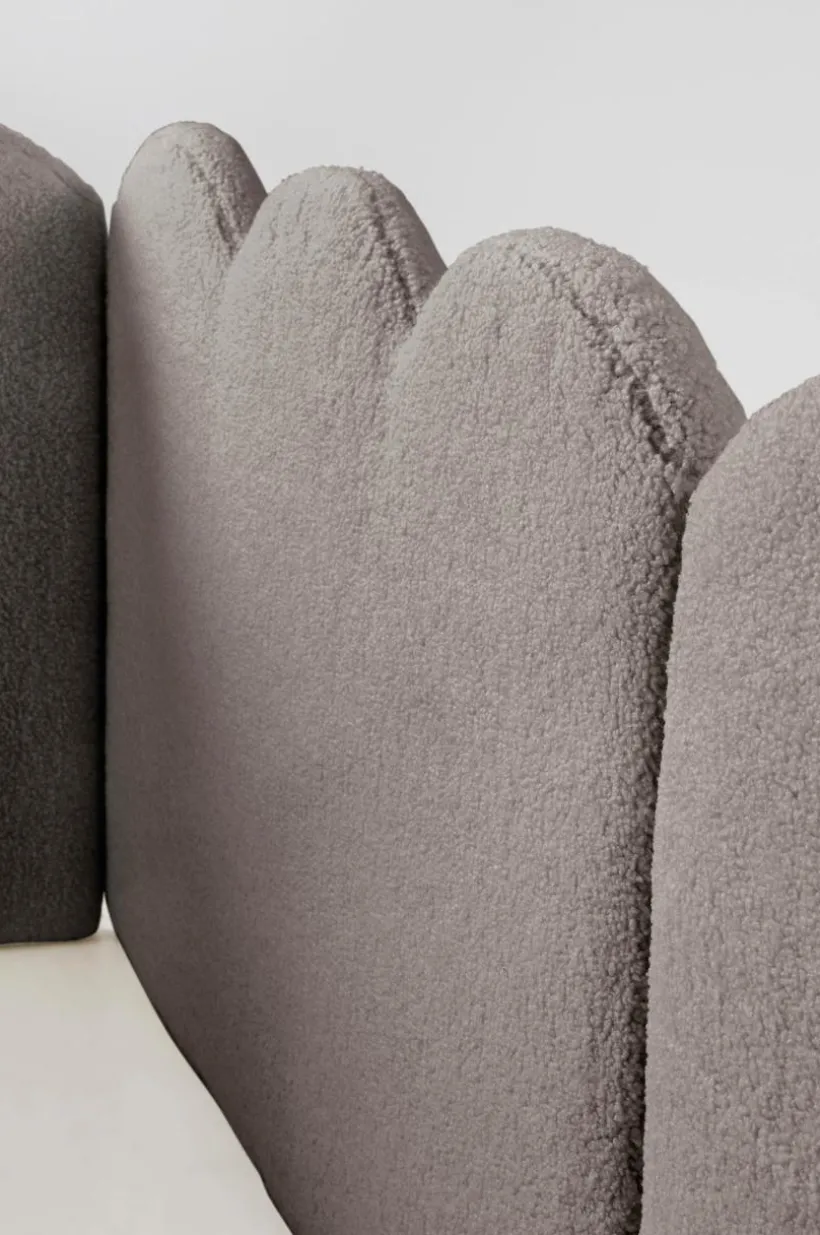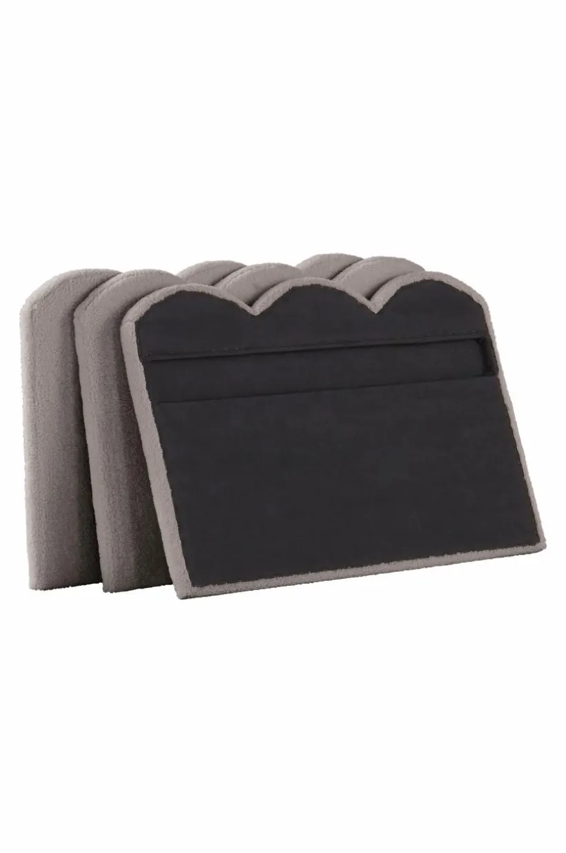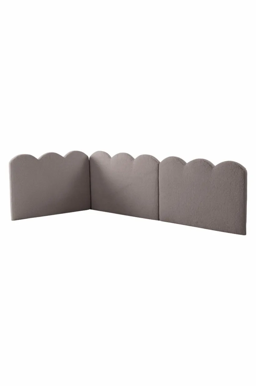Sänggavel i tre delar som skapar ett mysigt sänghörn. Du placerar en del bakom huvudänden och två längs väggen så att sängen får en fin inramning. Tyget är skön teddy som har en slitstyrka på 20000 Martindale. Gavlarna har lekfull form och mjuk vaddering. Väggfäste på baksidan gör dem enkla att sätta upp mellan sängen och väggen. Stommen är av FSC-märkt furu och plywood som kompletterats med mjuk skumfyllning och polyestervadd. Överdraget är ej avtagbart. Väggfäste medföljer. Viss montering krävs. Monteringsanvisning medföljer.