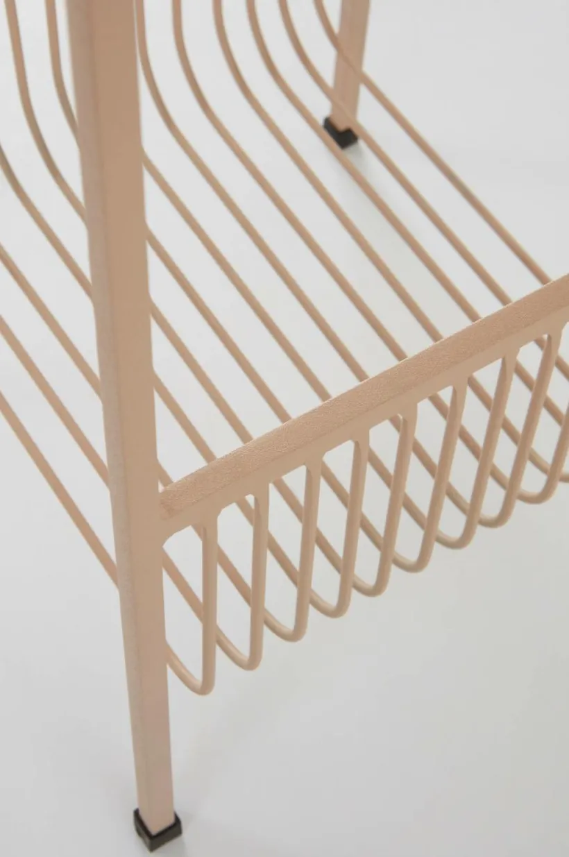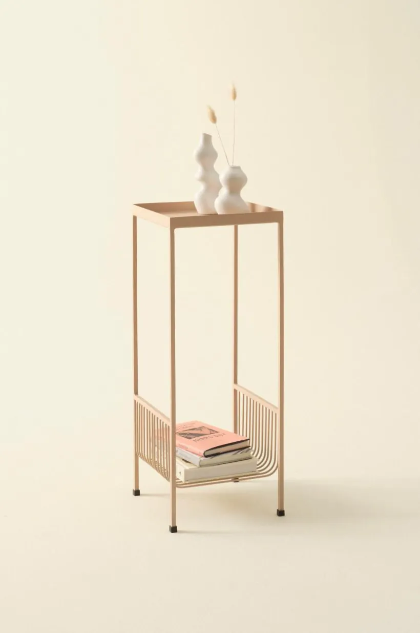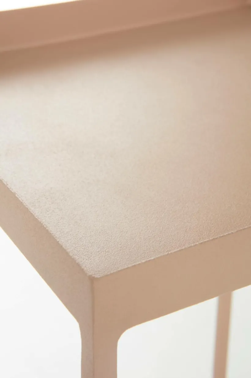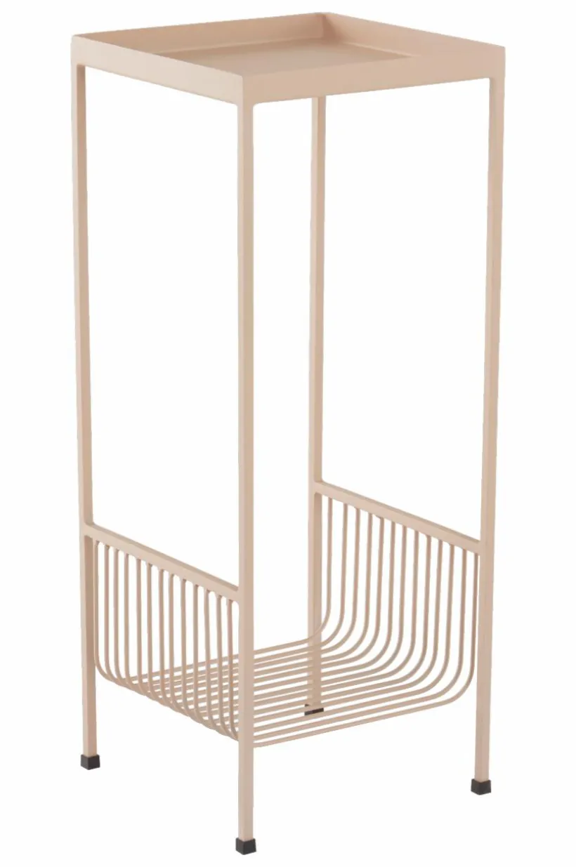 Sidobord av järn med målad, matt yta som har aningen kornig struktur. Sidobordet är mycket allround och passar fint bredvid fåtöljen med favorittidningarna lättåtkomliga på hyllan under. Och ett kreativt öga ser direkt att detta är en underbart fin piedestal för sköna, gröna växter. Eller varför inte ett sängbord med retrokänsla? Gummitassar på benen skyddar underlaget.