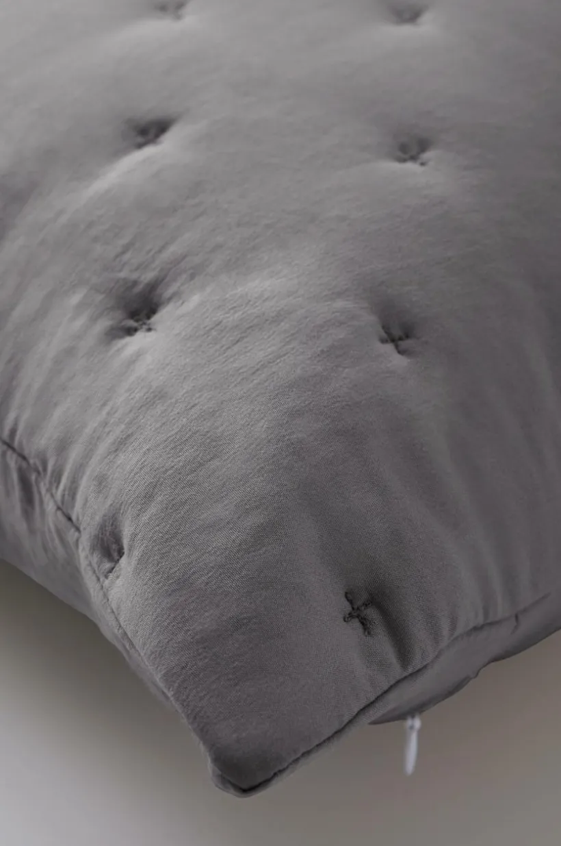 2-pack kuddfodral sytt i mjuk polyester som tvättats för att få en skön känsla. Kuddfodralen har enkel quiltning av broderade små kryss som bildar ett diskret mönster på framsidan. Tyget har en lätt vaddering som hålls på plats av quiltningen. Baksidan är slät. Dold dragkedja på baksidan.