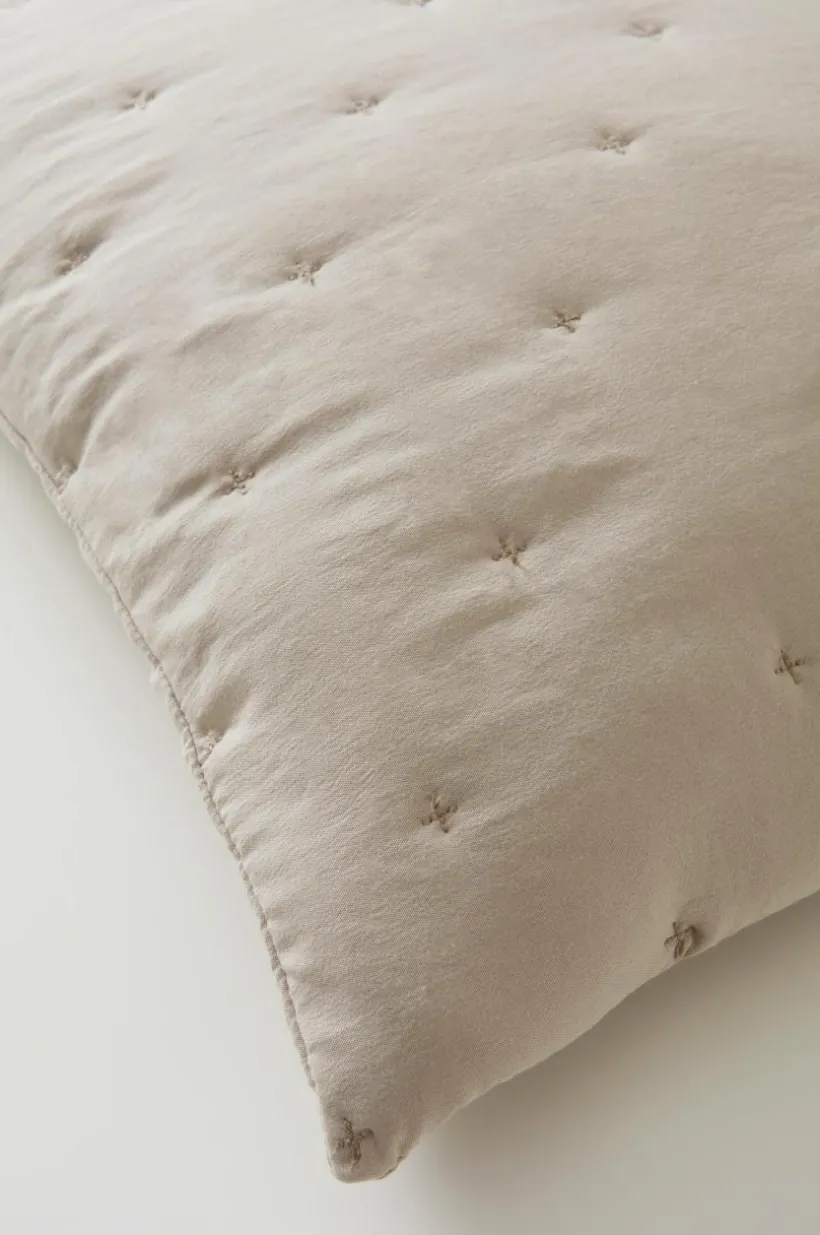 2-pack kuddfodral sytt i mjuk polyester som tvättats för att få en skön känsla. Kuddfodralen har enkel quiltning av broderade små kryss som bildar ett diskret mönster på framsidan. Tyget har en lätt vaddering som hålls på plats av quiltningen. Baksidan är slät. Dold dragkedja på baksidan.