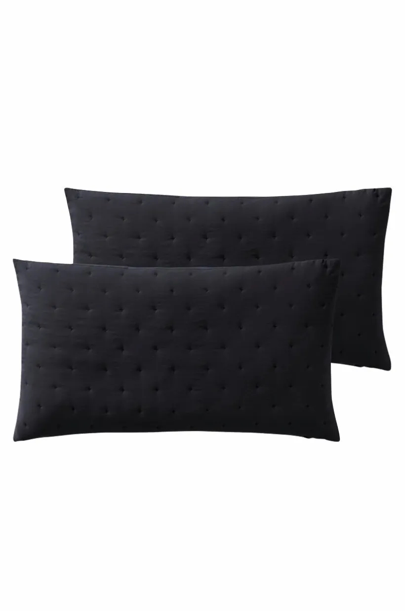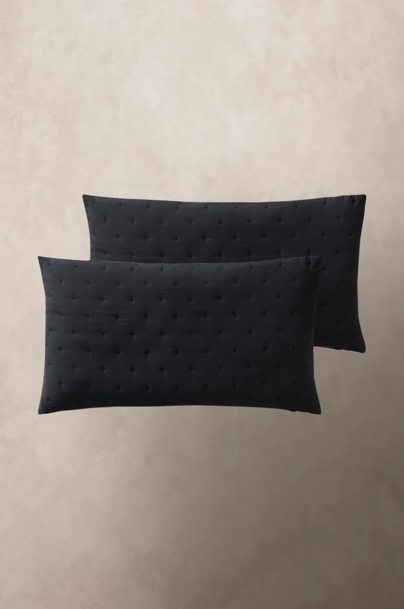 2-pack kuddfodral sytt i mjuk polyester som tvättats för att få en skön känsla. Kuddfodralen har enkel quiltning av broderade små kryss som bildar ett diskret mönster på framsidan. Tyget har en lätt vaddering som hålls på plats av quiltningen. Baksidan är slät. Dold dragkedja på baksidan.