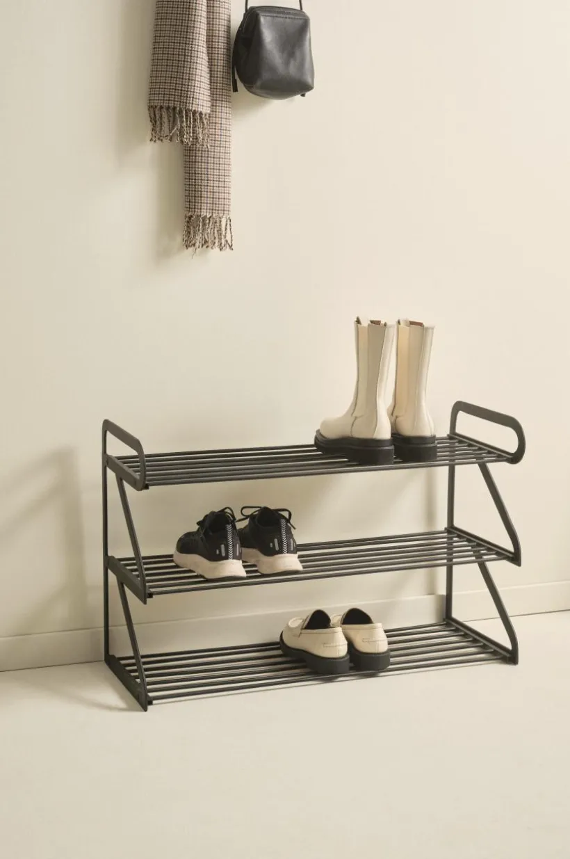 Skohylla i järn med matt, pulverlackerad yta. CALVER har snygg form, står stabilt och är lätt att flytta när du till exempel städar. Att samla skorna på ett ställe underlättar att hålla ordning i hallen och spar plats i en liten hall. Viss montering krävs. Monteringsanvisning medföljer.