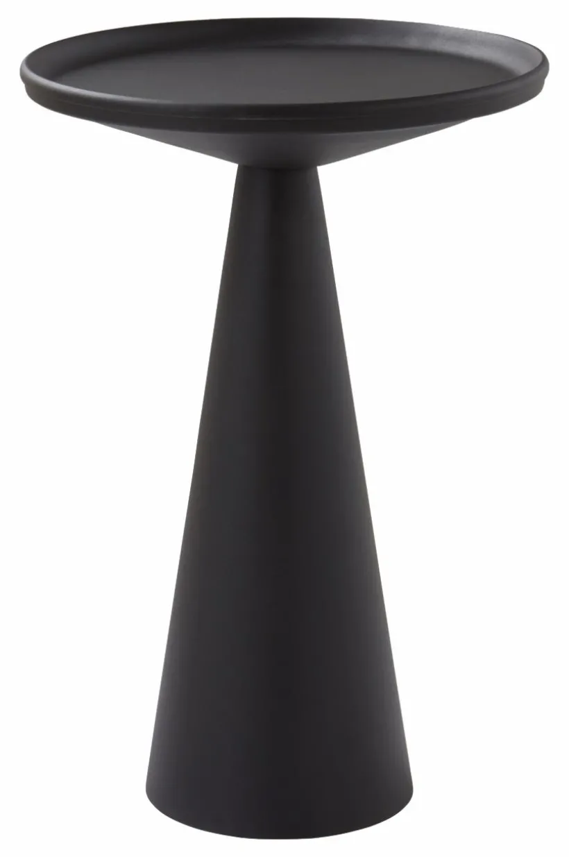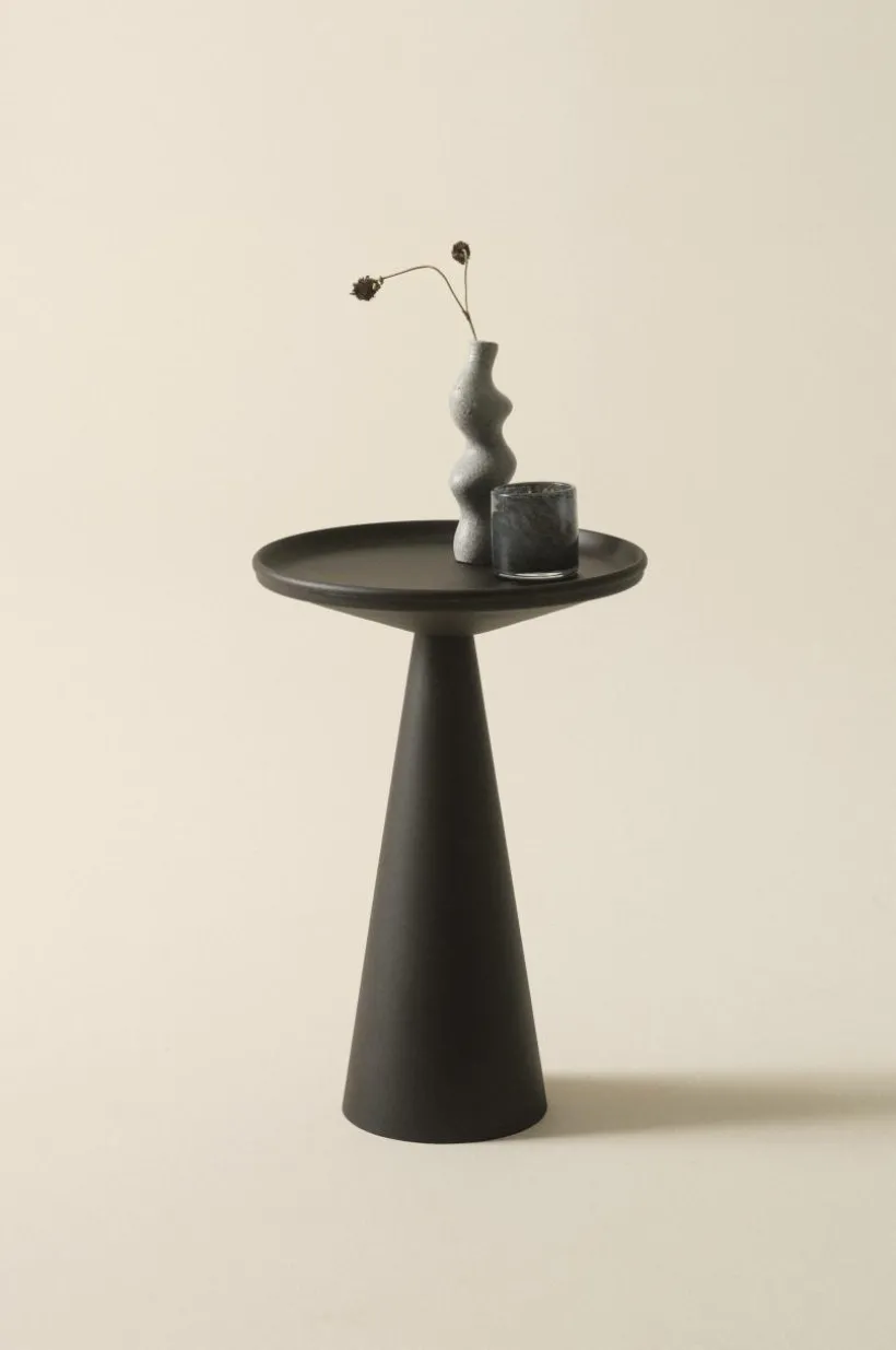 CAMERI är ett smäckert sidobord av järn med pulverlackerad, matt yta. Bordsskivan har en rundad kant, som en bricka. Den konformade foten är ihålig, så att bordet blir lätt och smidigt att hantera.
