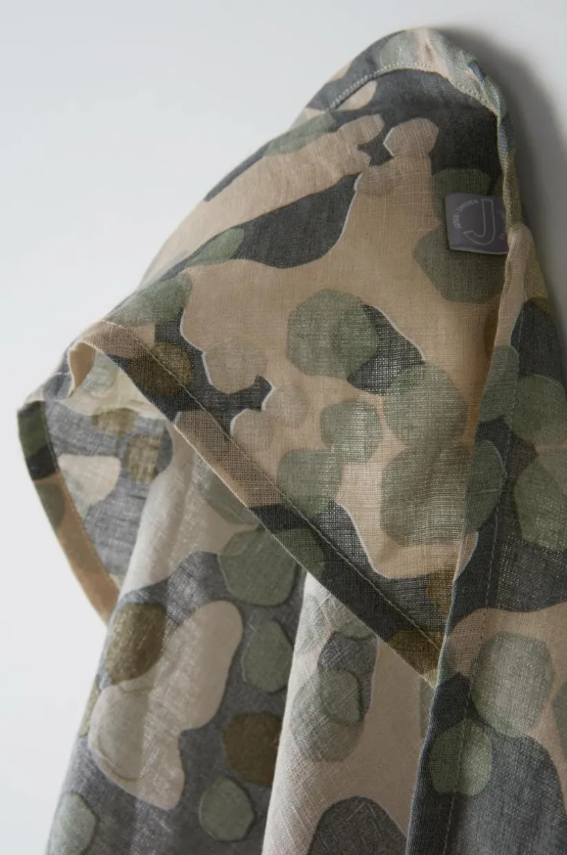 Babycape av naturligt och behagligt linne med tryckt mönster som designats av Maria Carlberg. Den sköna linnekvalitén har tvättats för att bli härligt mjuk och skön. Mysig modell som ett badlakan med huva, som du sveper runt ditt barn. Vikt 160 g/m². Trådtäthet på 94 tc. (Trådtätheten talar om antalet trådar, thread counts, per kvadrattum i ett tyg. Ju högre trådtäthet desto högre kvalité. Med undantag för linne som ofta vävs glesare för att få den rätta känslan.)