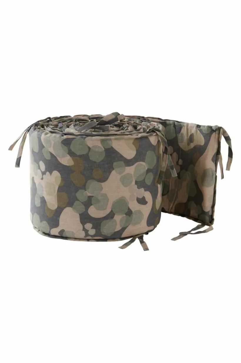 Spjälsängsskydd med yttertyg av naturligt och behagligt linne med tryckt mönster som designats av Maria Carlberg. Den sköna linnekvalitén har tvättats för att bli härligt mjuk och skön. Fyllning av polyuretan med mjuk skumgummikärna. Spjälskyddet gör spjälsängen mer ombonad och mysig, samtidigt som det hindrar barnet från att slå emot spjälorna i sömnen. Spjälsängsskyddet knyts fast med knytband. Yttertyget är avtagbart och tvättbart. Vikt 160 g/m².