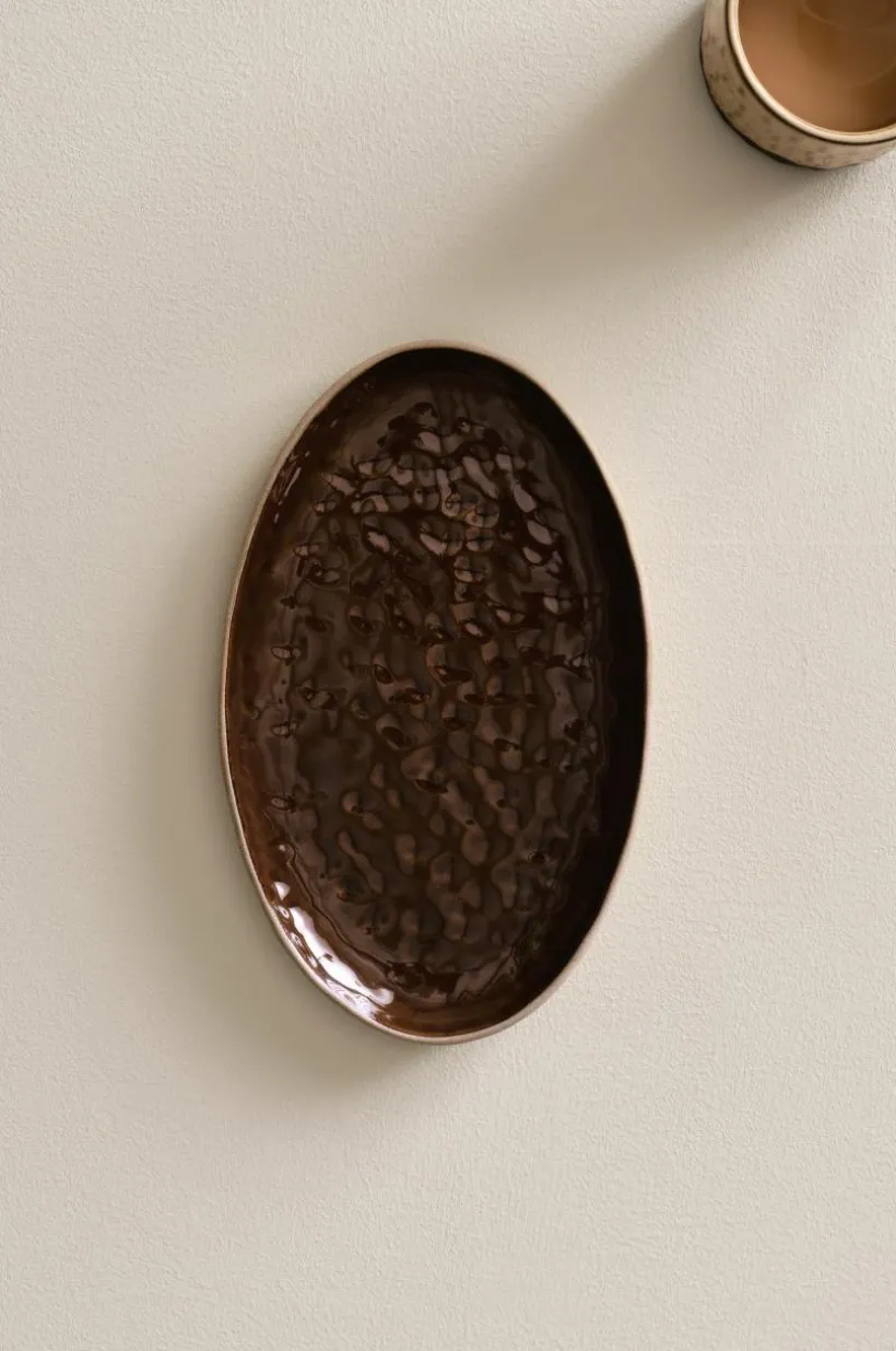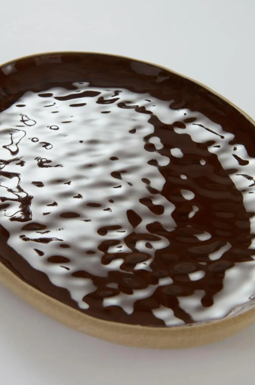 Serveringsfat i lergods som är tvåfärgat i en fin kombination. Det är en blank glasyr på insidan och utsidan är oglaserad. CARA-serien har en handgjord känsla med fina oregelbundenheter i formen. Serveringsfatet passar utmärkt till både vardag och fest.