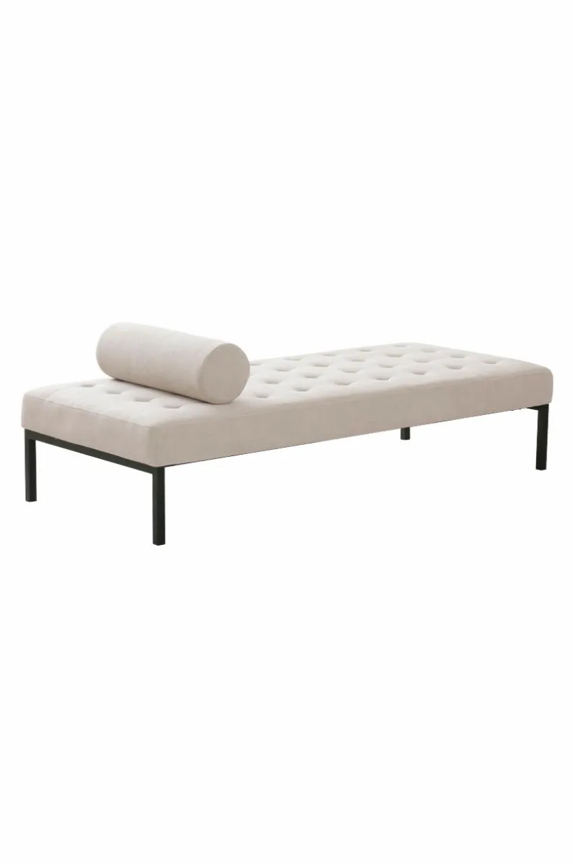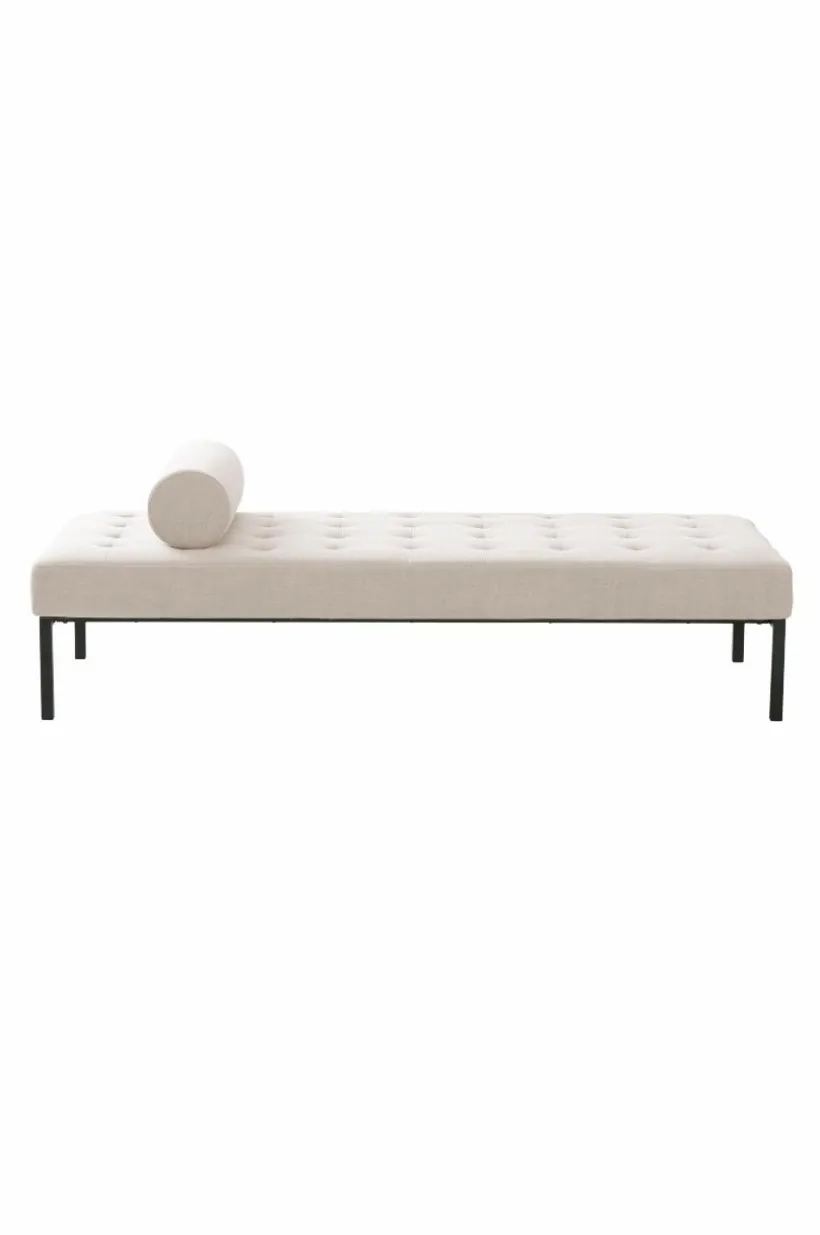 CARMEL dagbädd i linne ger med sin stilrena form i kombination med det vackra linnetyget, cylinderformade kudden och den djuphäftade sittdynan, ett extraordinärt intryck.CARMEL är underbar som komplement till en soffgrupp eller som ensam möbel i ett stort rum med bara en vacker matta och massor av härliga kuddar. Dagbädden är den ultimata lyxen. Den bjuder verkligen in till vila, så lägg dig ner och njut av lugnet.