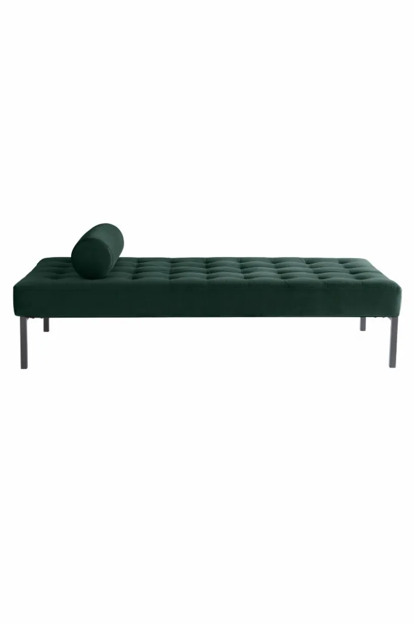 CARMEL dagbädd i sammet ger med sin stilrena form i kombination med det vackra sammetstyget, cylinderformade kudden och djuphäftade sittdynan, ett extraordinärt intryck som lyser upp vilket rum som helst.