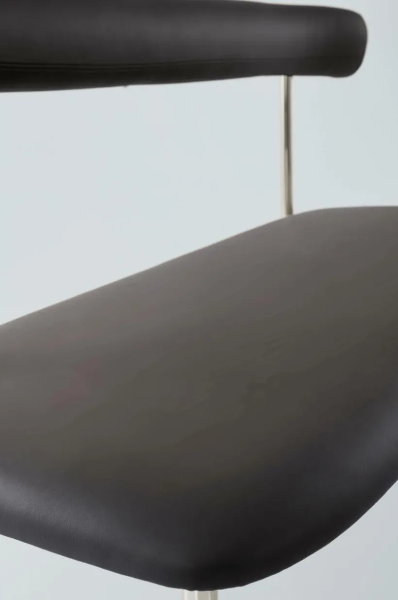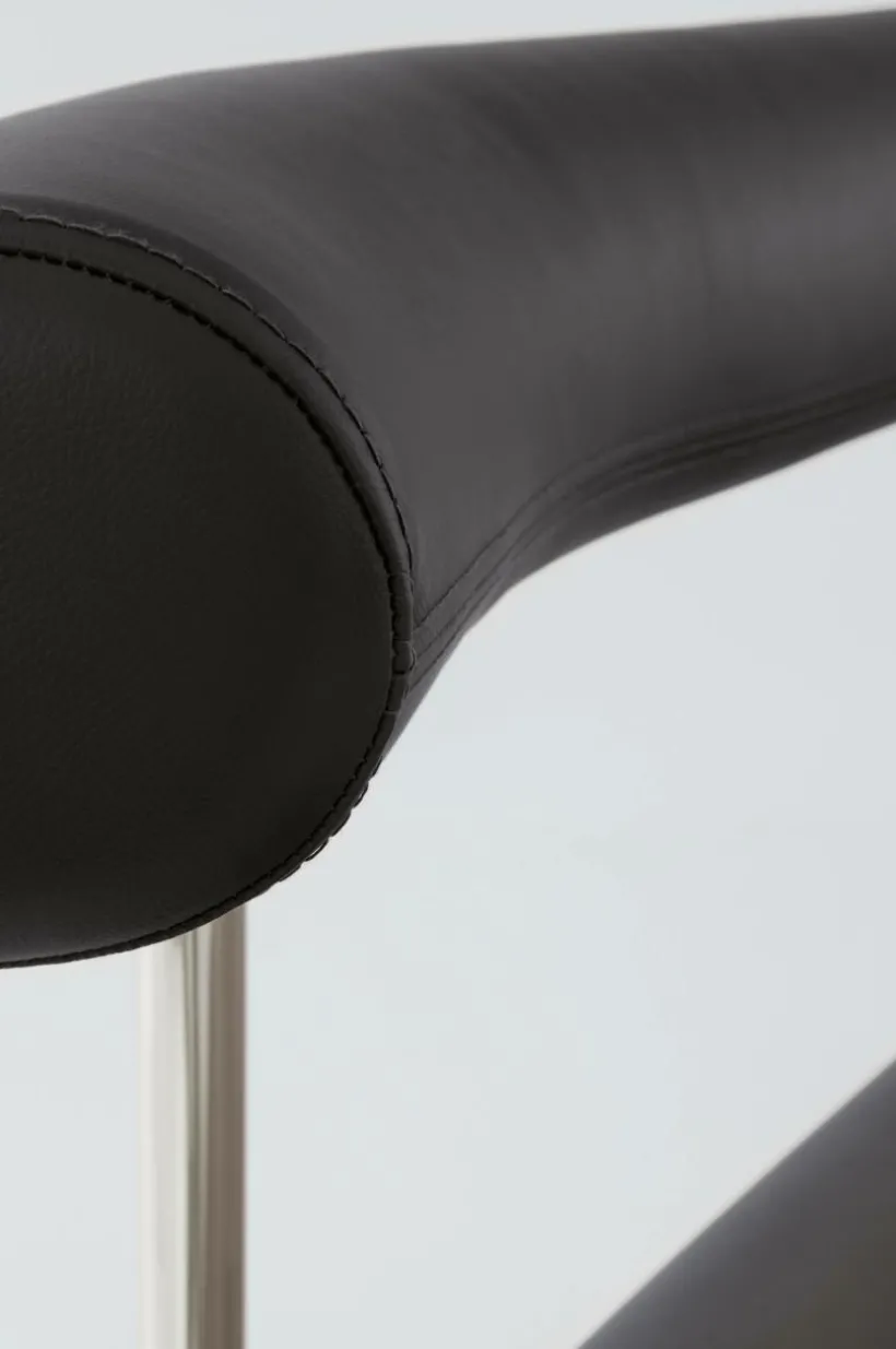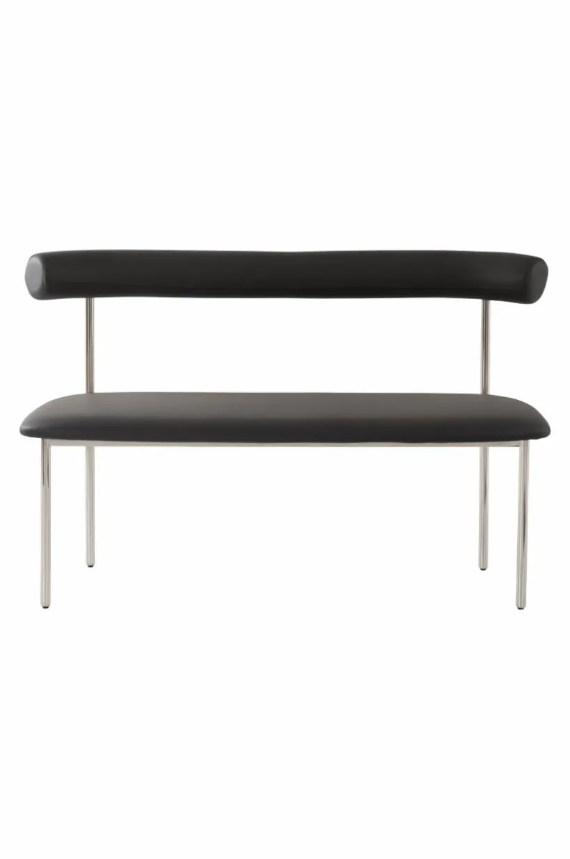 Soffa med stilren läderklädsel i smakfull kombination med kromat stål. Sitsen och det mjuka, rundade ryggstödet är mjukt stoppade, vilket gör soffan bekväm att sitta i, perfekt för långa, härliga måltider. Sitsens ram är tillverkad av plywood som är certifierad med FSC. Läder är ett slitstarkt material som du enkelt kan torka av vid behov.