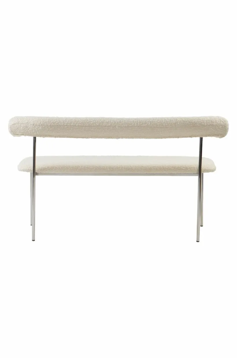 Soffa med mjuk klädsel i smakfull kombination med förkromat stål. Sitsen och det mjuka, rundade ryggstödet är mjukt stoppade, vilket gör soffan bekväm att sitta i, perfekt för långa, härliga måltider. Sitsens ram är tillverkad av plywood.