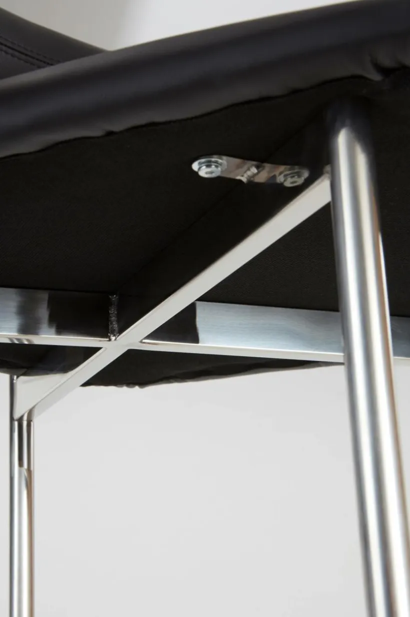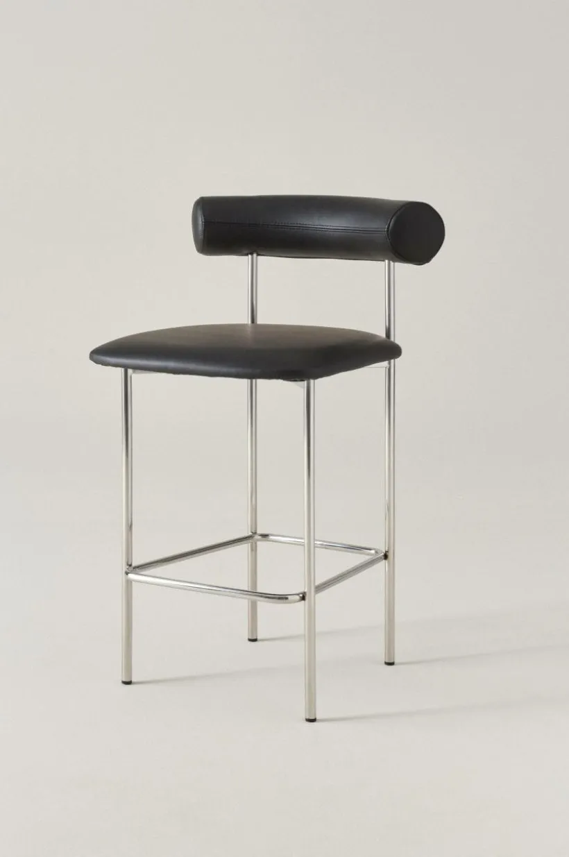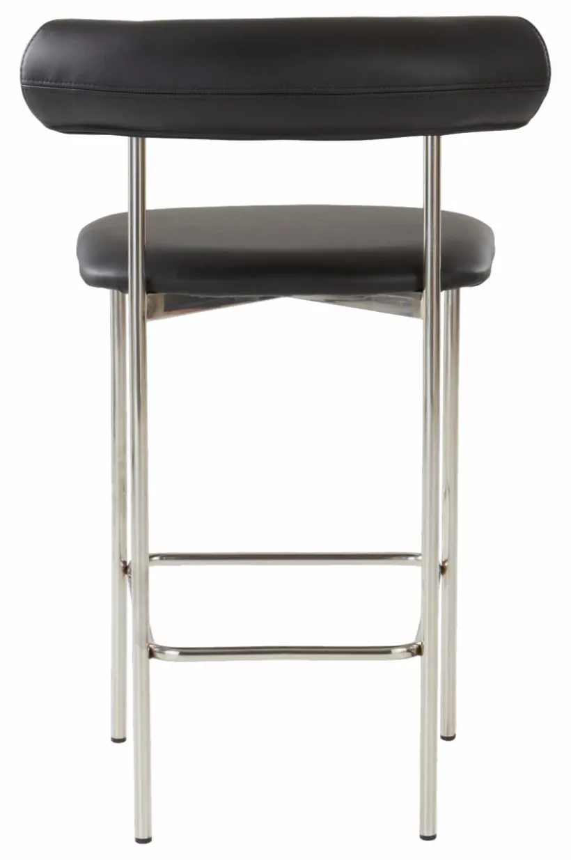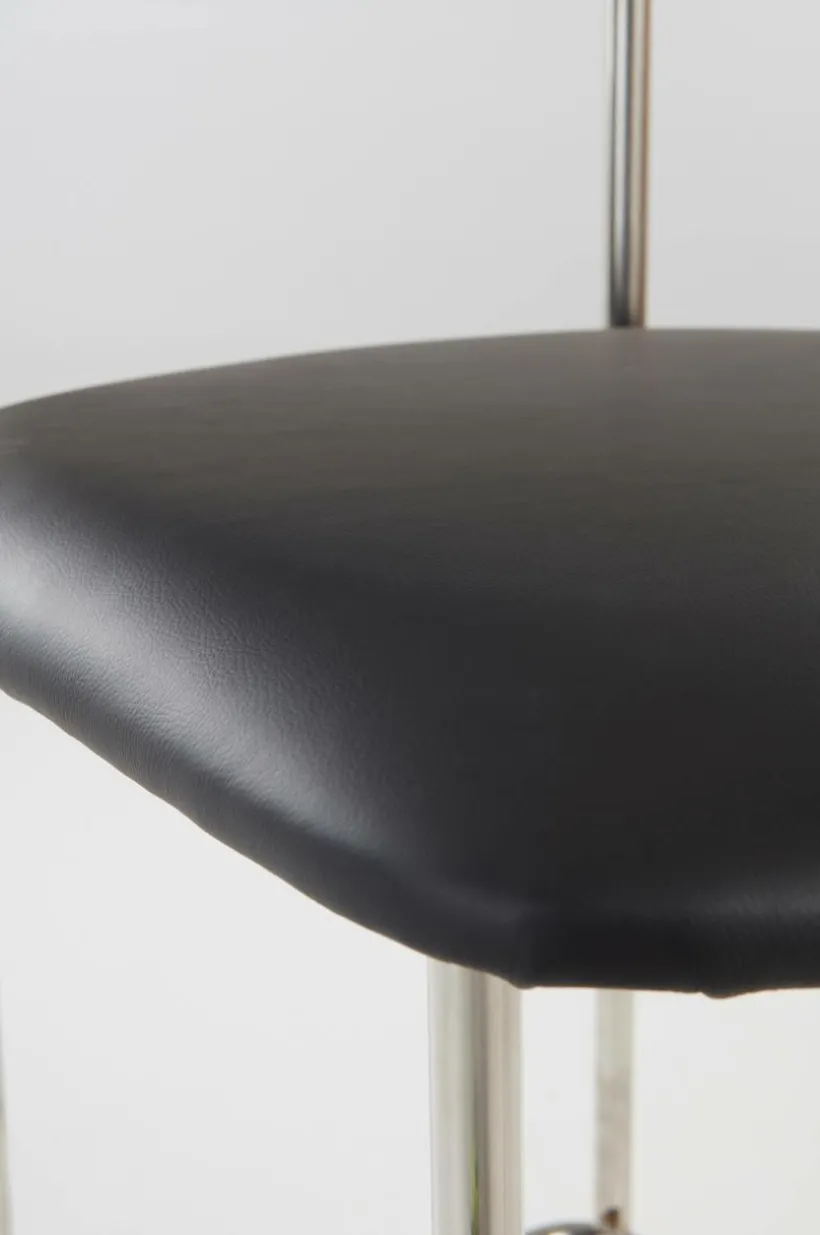 Barstol med stilren läderklädsel i smakfull kombination med kromat stål. Sitsen och det mjuka, rundade ryggstödet är mjukt stoppade, vilket gör stolen bekväm att sitta på, perfekt för långa, härliga måltider. Sitsens ram är tillverkad av plywood som är certifierad med FSC. Läder är ett slitstarkt material som du enkelt kan torka av vid behov.