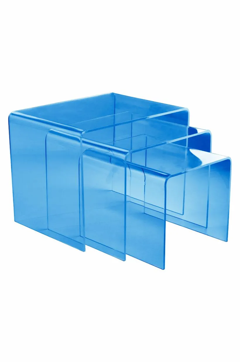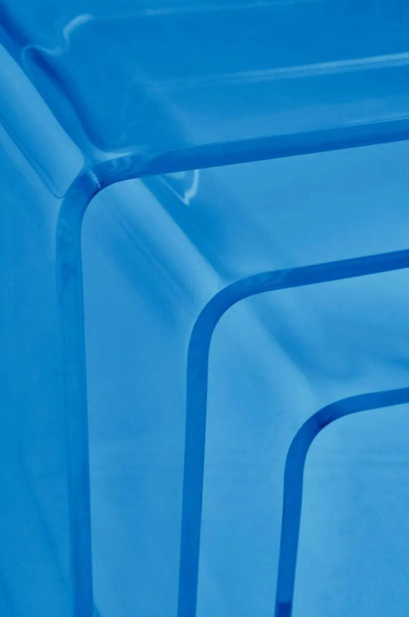 3-pack sidobord av akrylglas. Du får tre bord, de tre har olika storlek och är i samma färg. Du väljer om du vill ha dem tillsammans i grupp eller förgylla olika rum i ditt hem. Det u-formade bordet går i ett stycke med mjukt rundade hörn och utan skarvar, och de ger skön, futuristisk känsla. CATALINA är mycket användbart som sidobord, sängbord eller hallbord. Trion tillsammans blir ett fint och flexibelt soffbord. Vill du spara plats kan borden placeras under varandra, de är stapelbara. Perfekt vid platsbrist.