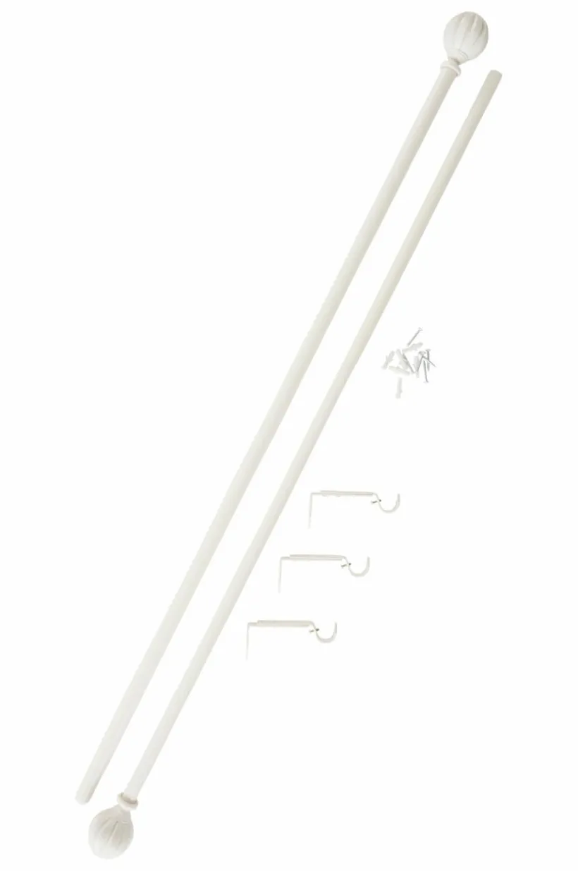 Material; Stång och hållare: Järn. Änddekor: Polyresin. Skruvar: Stål.