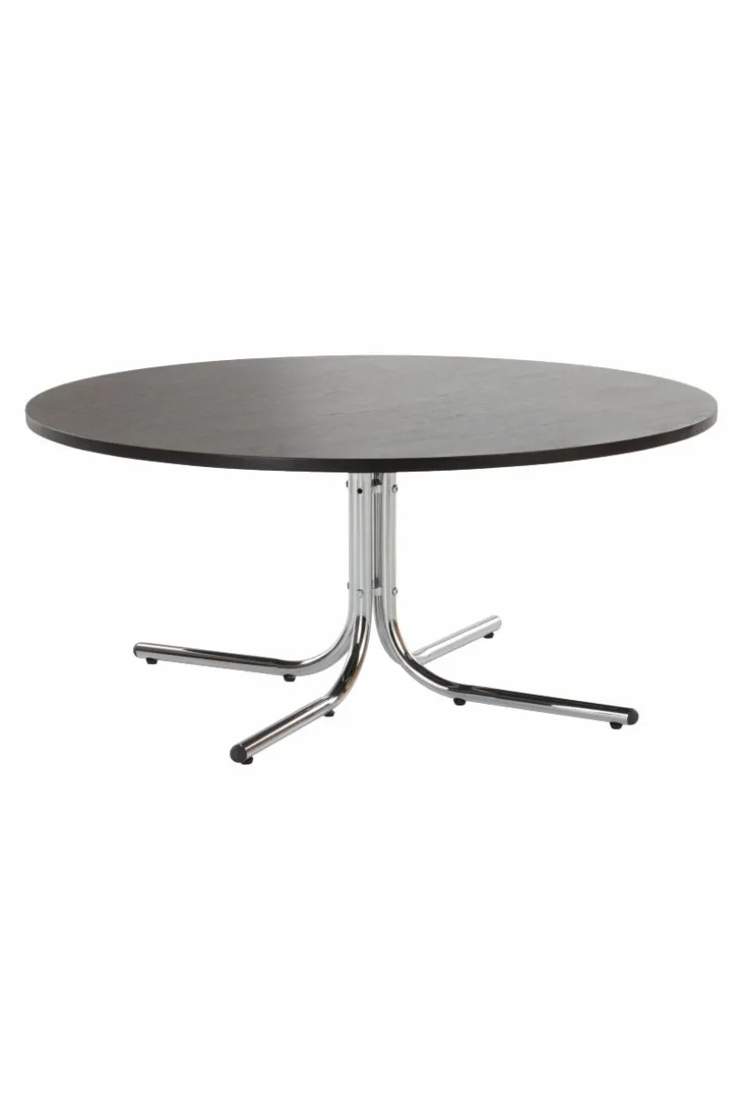 Runt soffbord med blankt, krompläterat underrede av järnrör och bordsskiva som är av FSC-certifierad MDF med olika ytbehandling; valnötsfaner, vitlackerat och askfaner med svart, vattenbaserad finish. Det snygga soffbordet har skön retrostil och tanken går tillbaka till det ljuva 70-talet. Viss montering krävs. Monteringsanvisning medföljer.