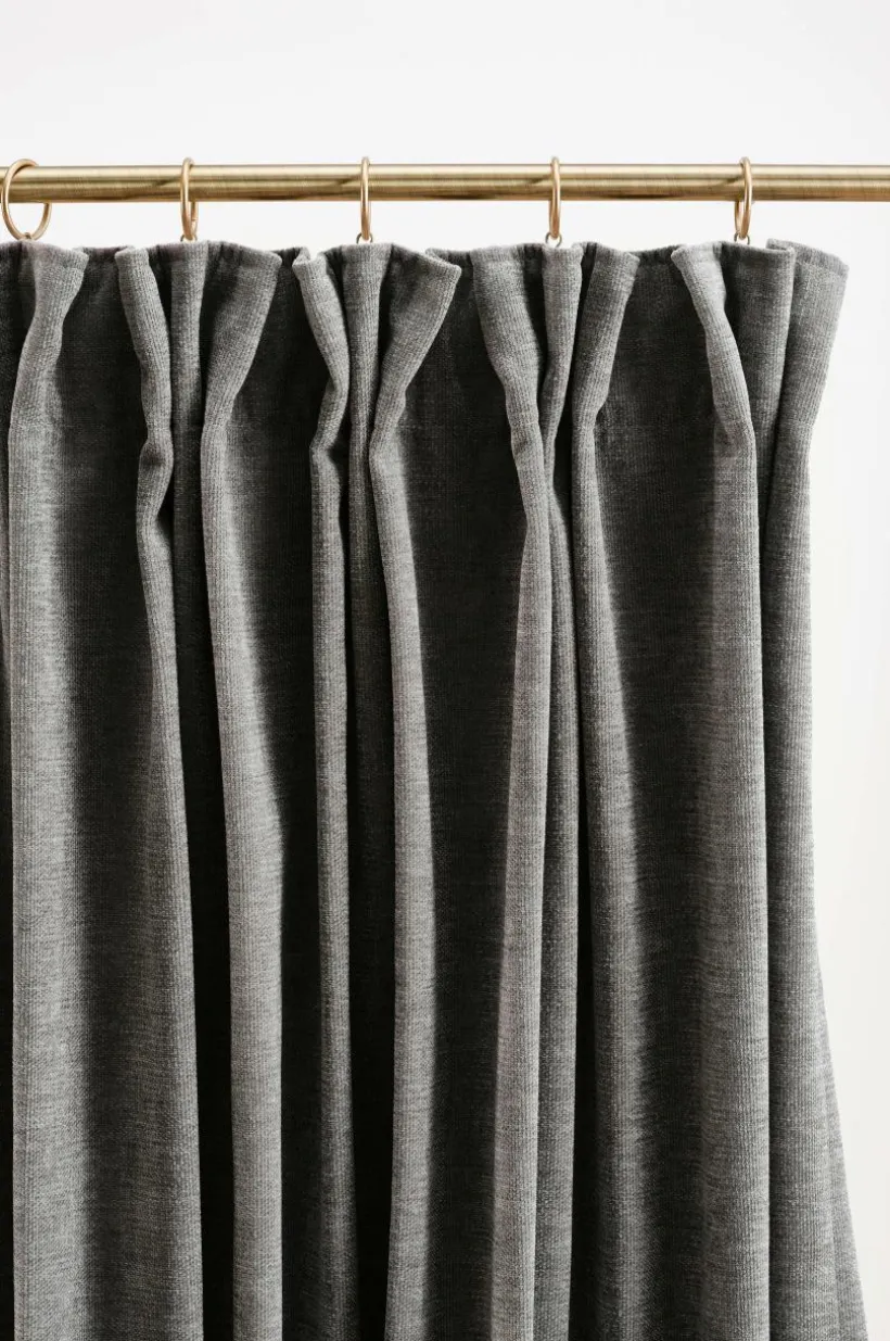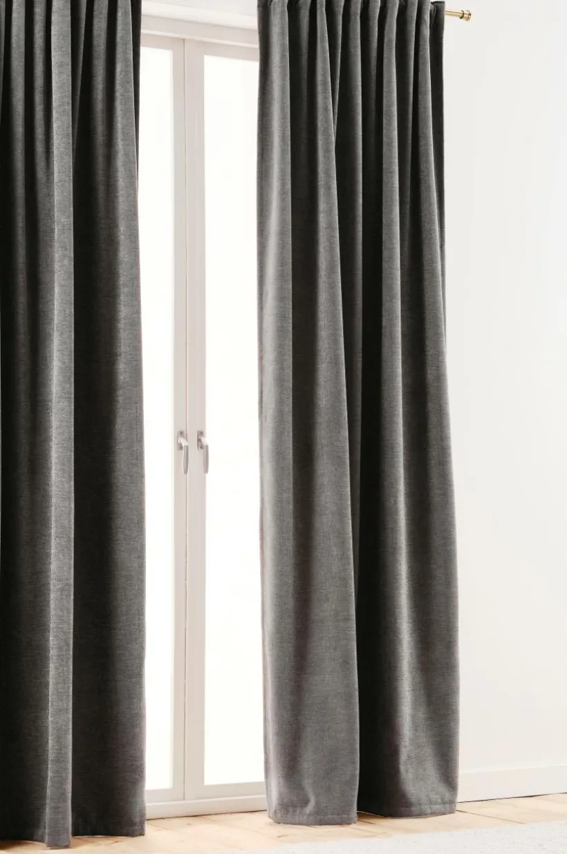 2-pack gardinlängder i enfärgad chenille med fin struktur. Med påsytt multifunktionsband. Gardinen kan hängas upp med fingerkrokar, kanal samt dold hälla.