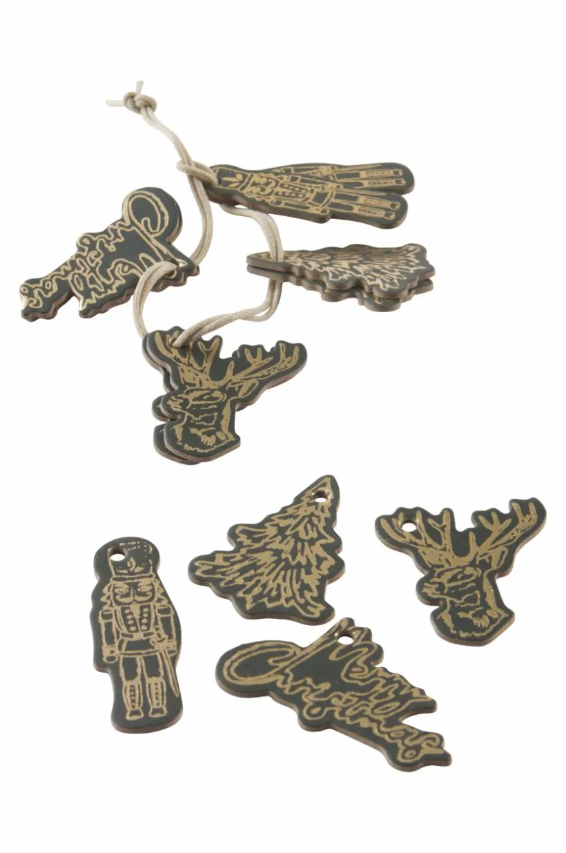 Galgar med nötknäppare med jultema. Dessa unika dekorationer ger festlig charm till alla interiörer. Varje set innehåller 12 fint designade taggar som är perfekta för att skapa julstämning.