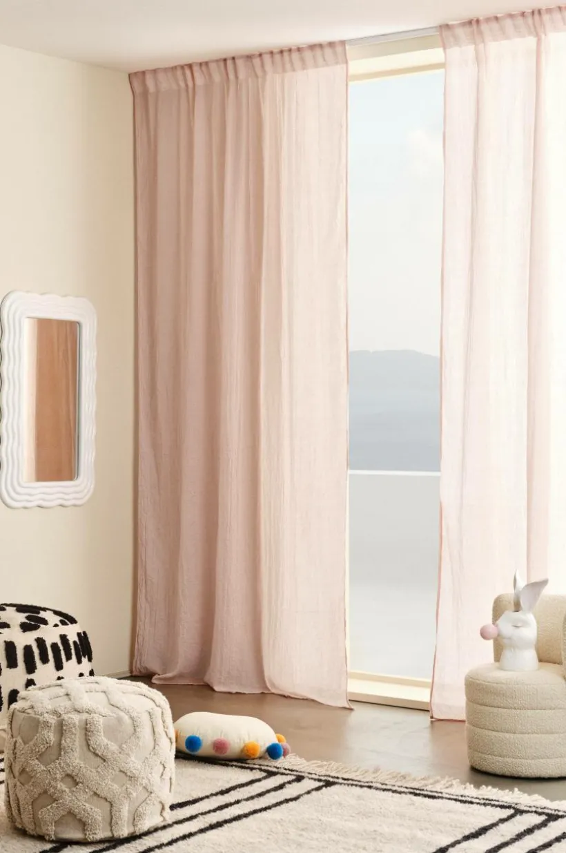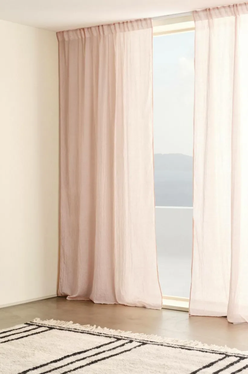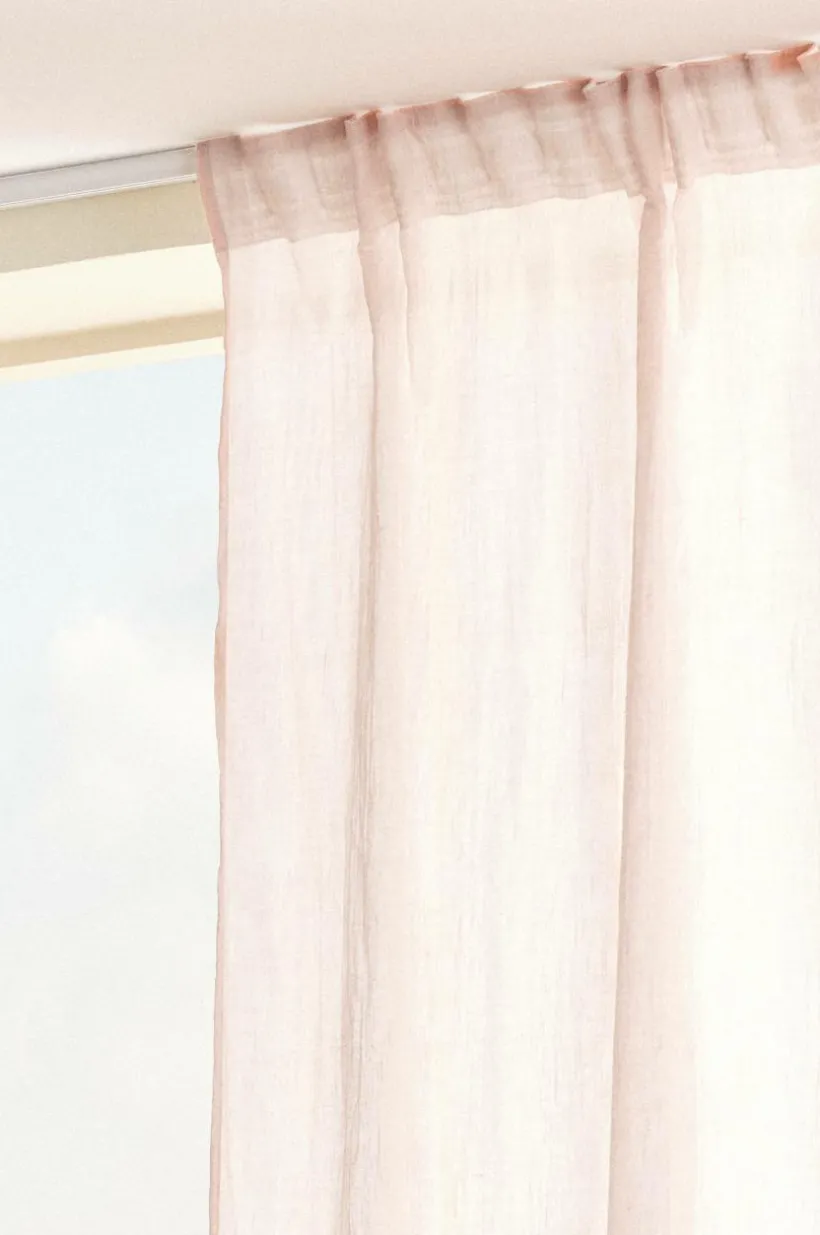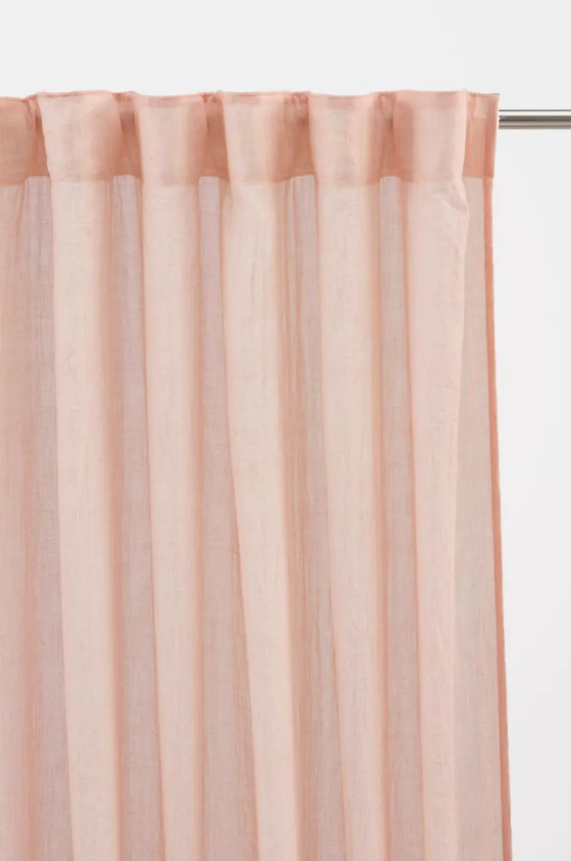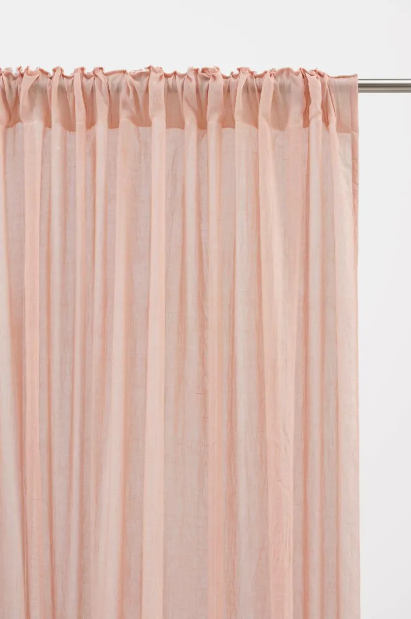 Två gardinlängder i mjuk bomullsblandning som ger ett fint fall. Påsytt multifunktionsband upptill gör att gardinen kan hängas upp med fingerkrokar, kanal samt dold hälla.