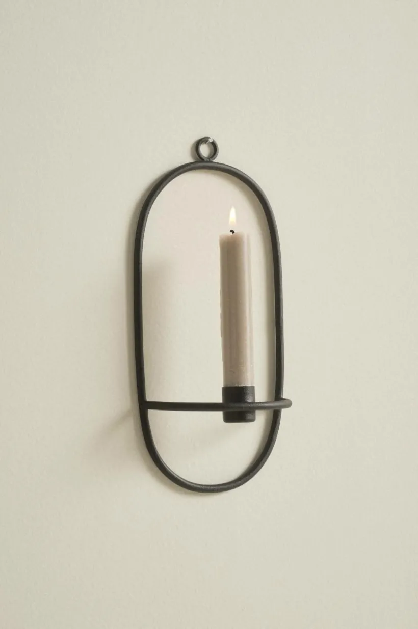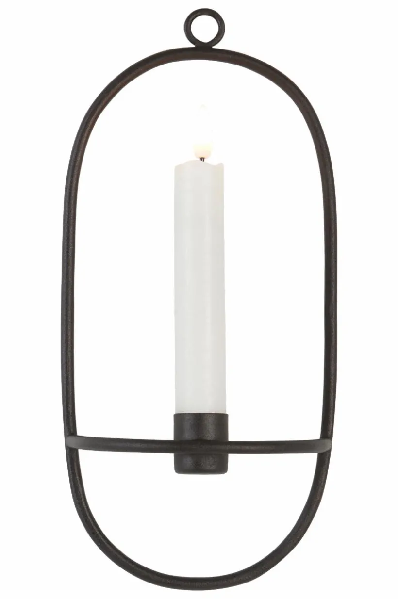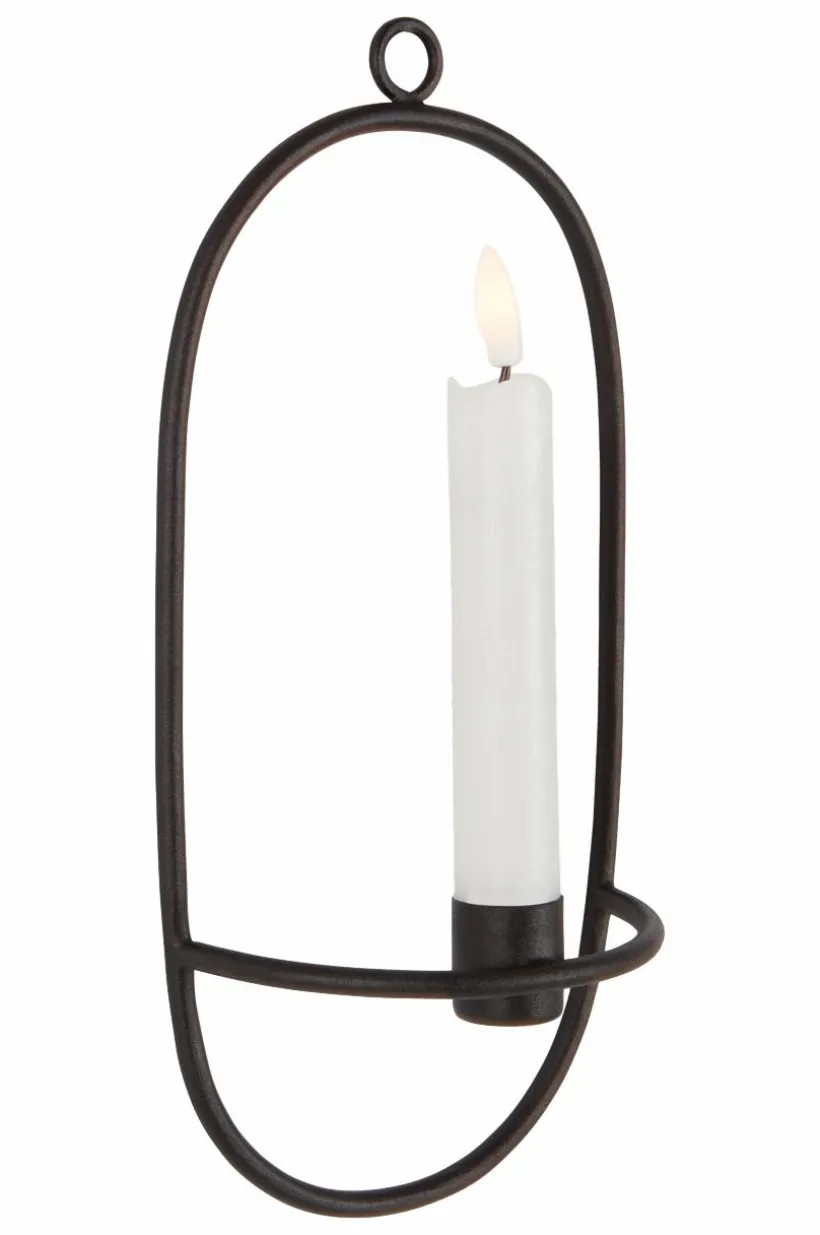 Oval väggljusstake av järn med pulverlackerad yta. Designen är enkel och stilren och ger hög mysfaktor när kvällarna är mörkare. Öglan upptill gör väggljusstaken enkel att hänga upp. Ljus medföljer ej.