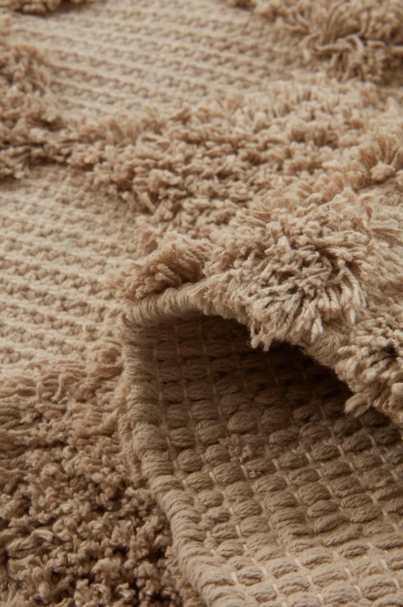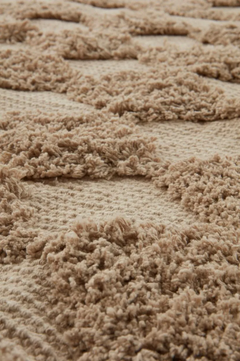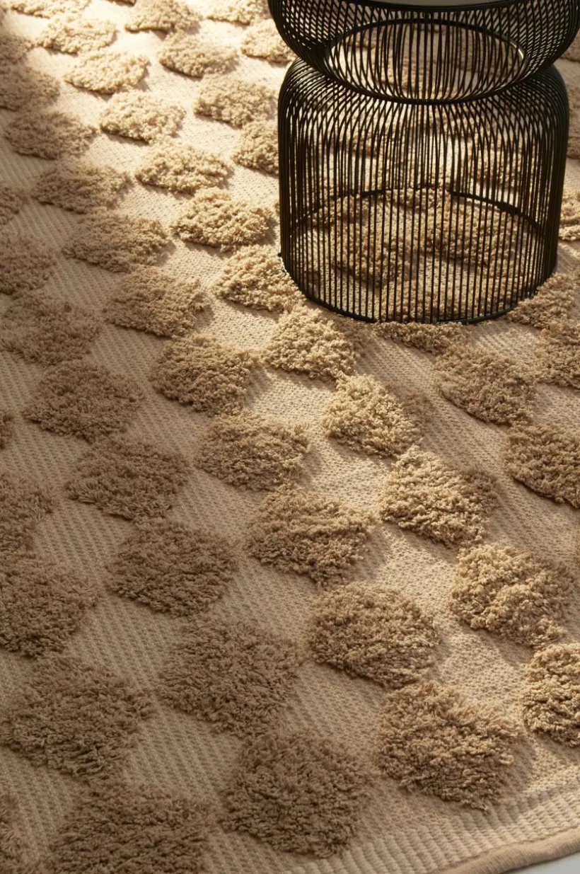 CLEMENTINE, en fantastisk handvävd bomullsmatta, ger både vardagsrum och sovrum en mysig charm. Mattan har en baksida av bomull och det knutna garnet bildar ett inbjudande diamantmönster som ger en touch av mjukhet.