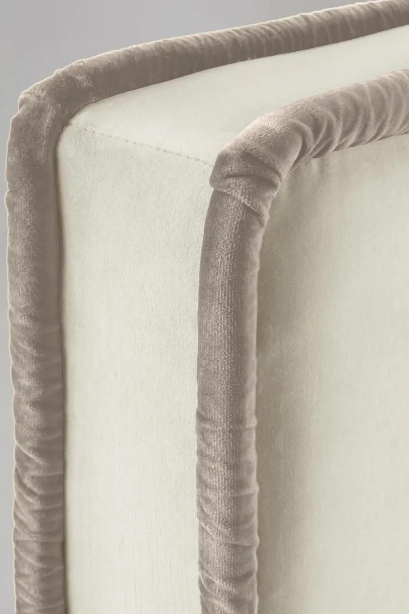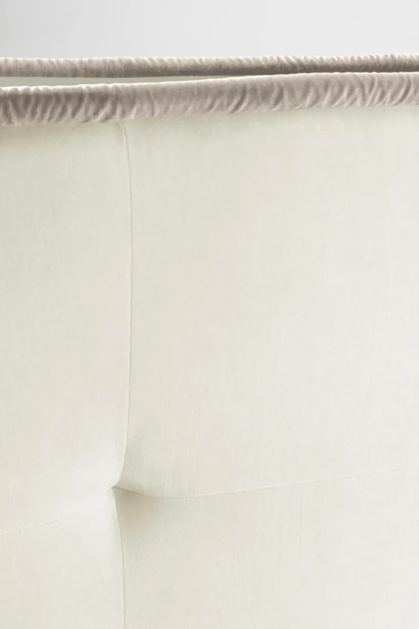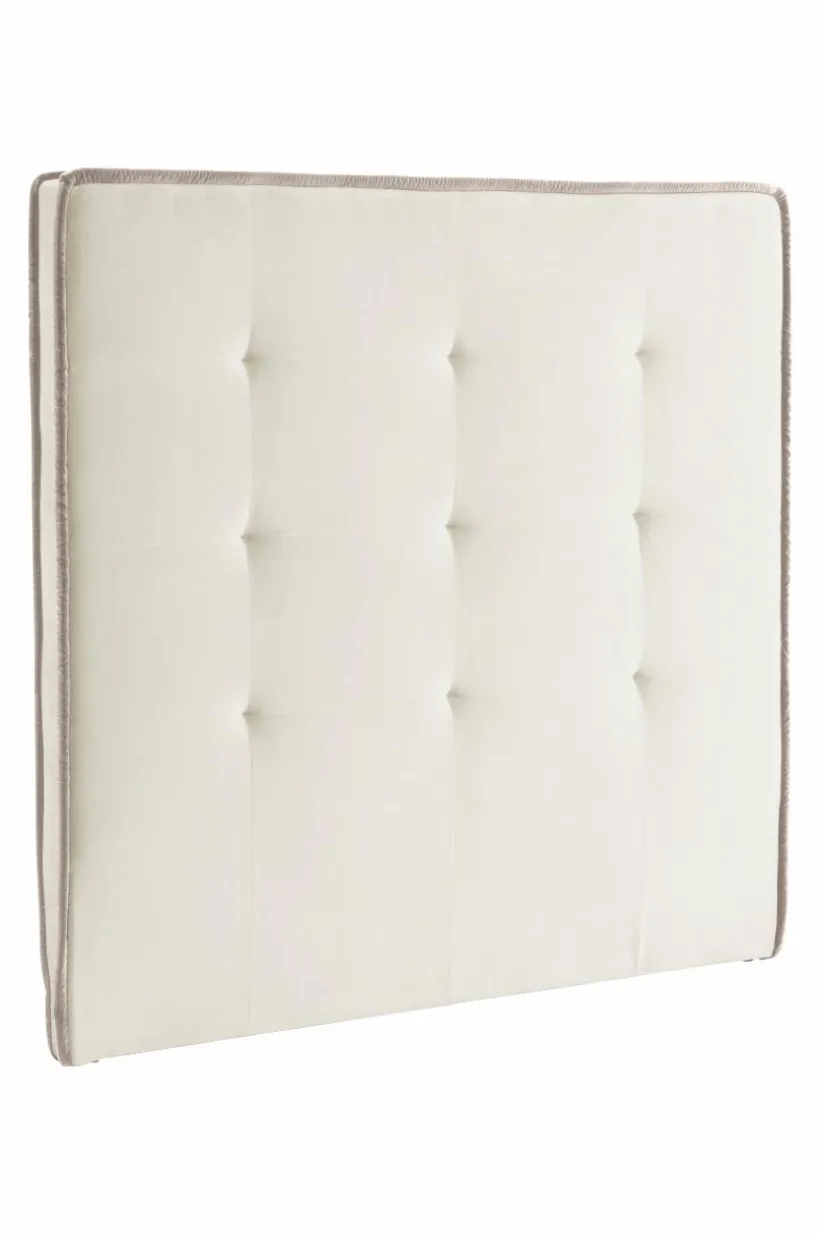 Sänggavel i sammet med djupa sömmar (boxtuftning) som ger snygg effekt tillsammans med kraftig, accentfärgad passpoalkant runt gaveln, både i framkant och bakkant. Tyget har en slitstyrka på 28000 Martindale. Stommen är av massiv FSC-märkt trä och FSC-märkt plywood som kompletterats med mjuk skumfyllning. Sänggaveln monteras mot väggen bakom din resårmadrass. Överdraget är ej avtagbart. Väggfäste medföljer.