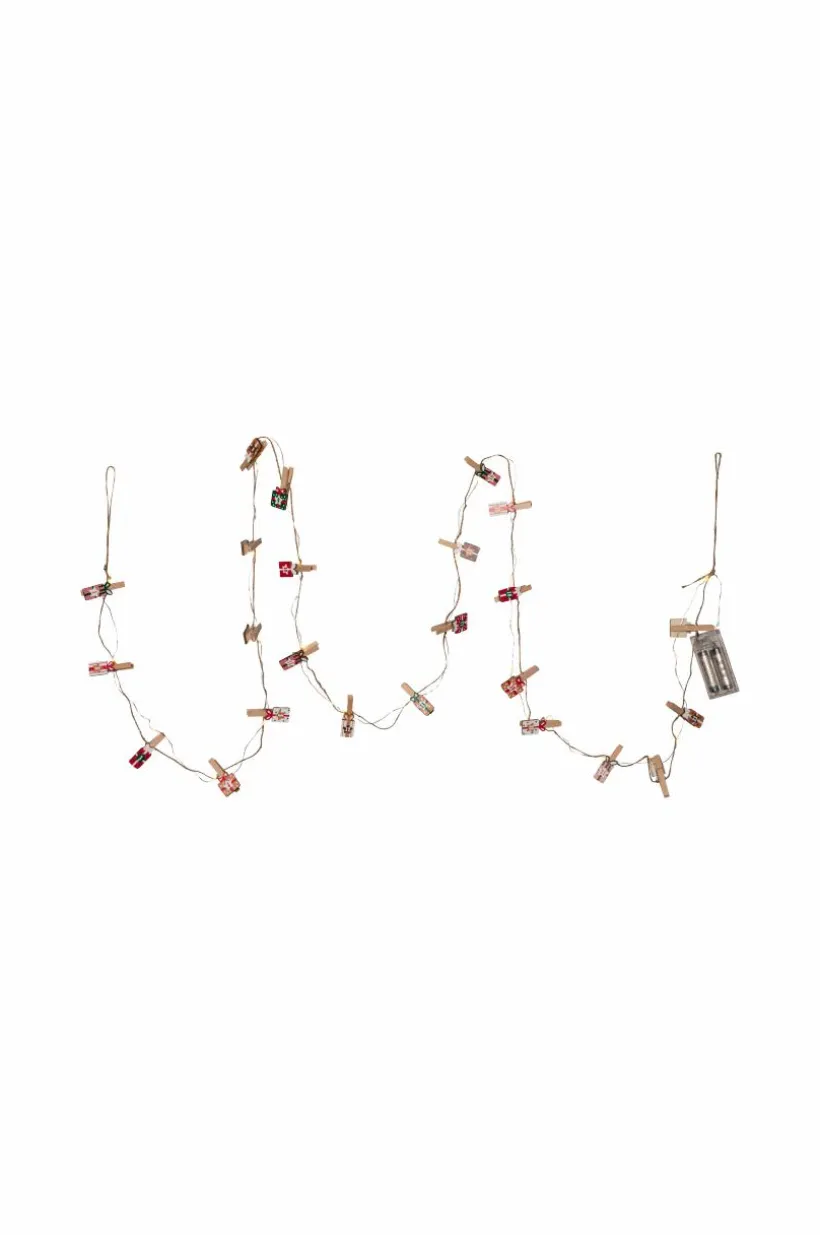 Ljuskedjan tillför festlig charm till ditt hem med sin fina silverfärgade tråd som pryds av 24 träklämmor, målade i livfulla julfärger och numrerade från 1 till 24. Den är perfekt för att skapa en förtrollande adventskalender och har 24 varmvita lysdioder som ger ett mysigt sken. Den har en praktisk timerfunktion.Låt dig njuta av en härlig nedräkning till julafton.