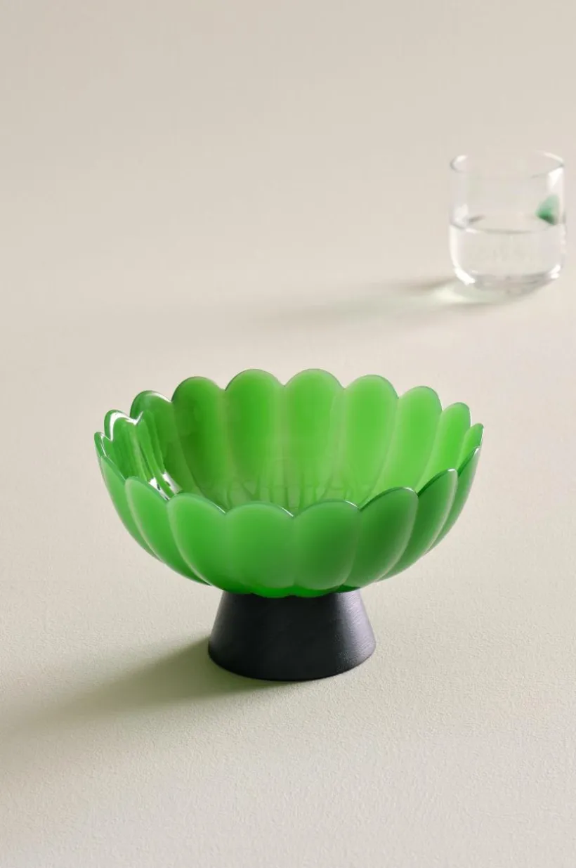 CLOVER skål ø 20 cm. Köksskål i glas. Livsmedelssäkert jadeglas i form av en blomma. Trendig och modern förvaringslösning för ditt kök. Perfekt för servering eller organisering. Tillför elegans till ditt utrymme.