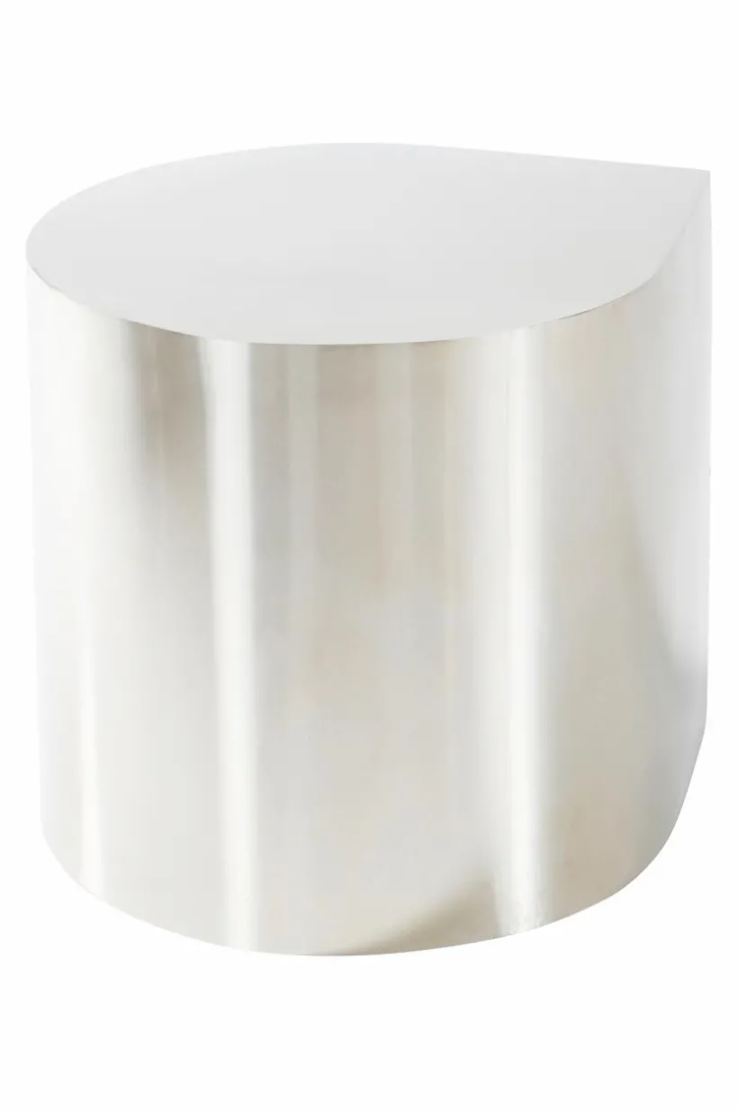 Droppformat sidobord i rostfritt stål med högblank finish. Bordet har en finurlig form där spetsen på droppen är 90 grader vilket innebär att sätter du fyra bord tillsammans så får du en fin fyrklöver och du kan variera dig efter tycke och smak. Sidobordet gör sig också fint i ett hörn av rummet eller mellan två soffor som står i ett L. Bordet är ihåligt vilket gör det hanterbart. CUBE är ett lyxigt litet bord i snygg form och med läcker metallic-finish som får hela rummet att andas elegans.