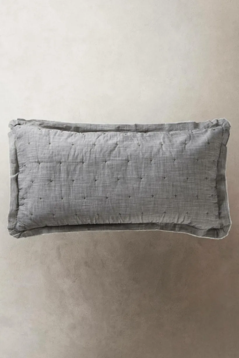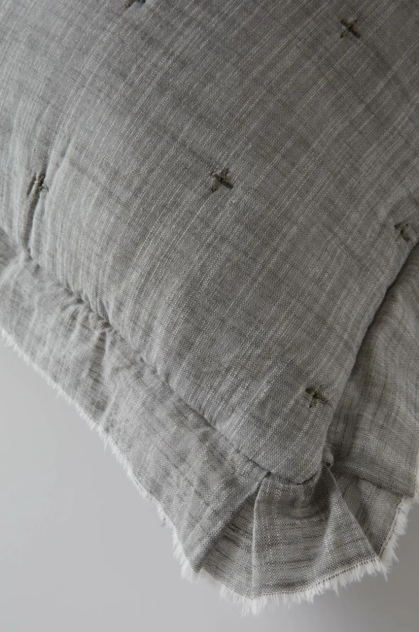 1-pack kuddfodral sytt i mjuk bomullslub som är plaggtvättad vilket innebär att det har tvättas efter sömnad. Slubeffekten ger tyget viss struktur. Tyget är snyggt melerat och lätt vadderat med enkel quiltning av broderade prickar som bildar ett diskret mönster på framsidan. Vinge med rå kant runtom förstärker den mjuka stilen. Kuddfodralets baksida är av bomull. Dragkedja i nederkant.