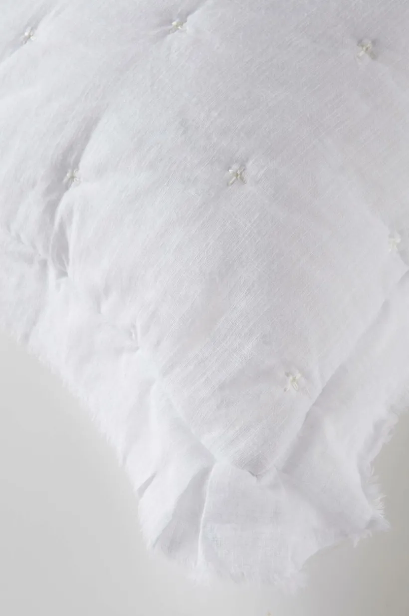 1-pack kuddfodral sytt i mjuk bomullslub som är plaggtvättad vilket innebär att det har tvättas efter sömnad. Slubeffekten ger tyget viss struktur. Tyget är snyggt melerat och lätt vadderat med enkel quiltning av broderade prickar som bildar ett diskret mönster på framsidan. Vinge med rå kant runtom förstärker den mjuka stilen. Kuddfodralets baksida är av bomull. Dragkedja i nederkant.