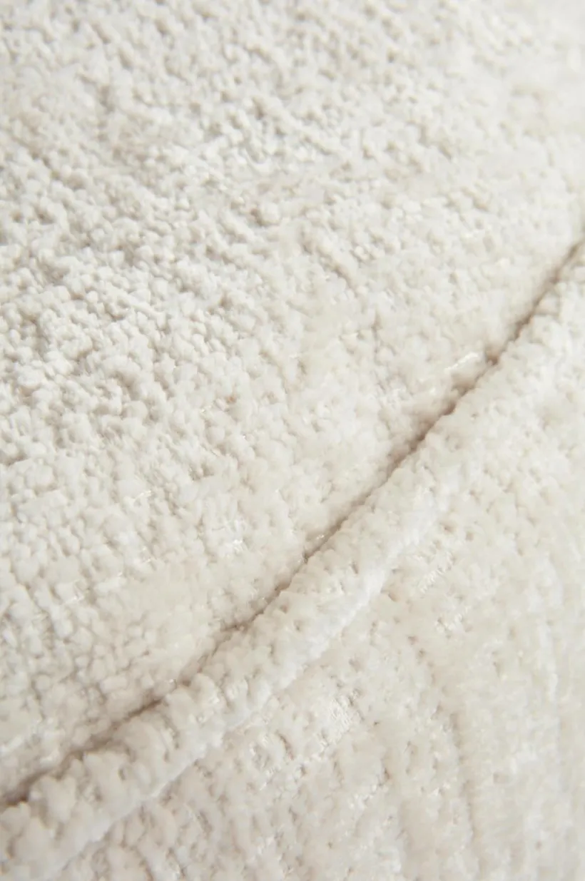Sittpuff med fluffigt tyg av polyester och fyllning av cellplastkulor som gör den lagom mjuk. Runt kanten har puffen en passpoalkant och handtaget på sidan gör den enkel att flytta och bära med sig. Det tåliga tyget har Martindale på 40000 och tål slitage. Klädseln är inte avtagbar.