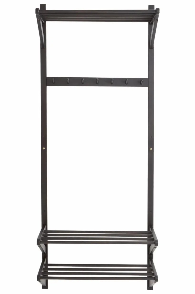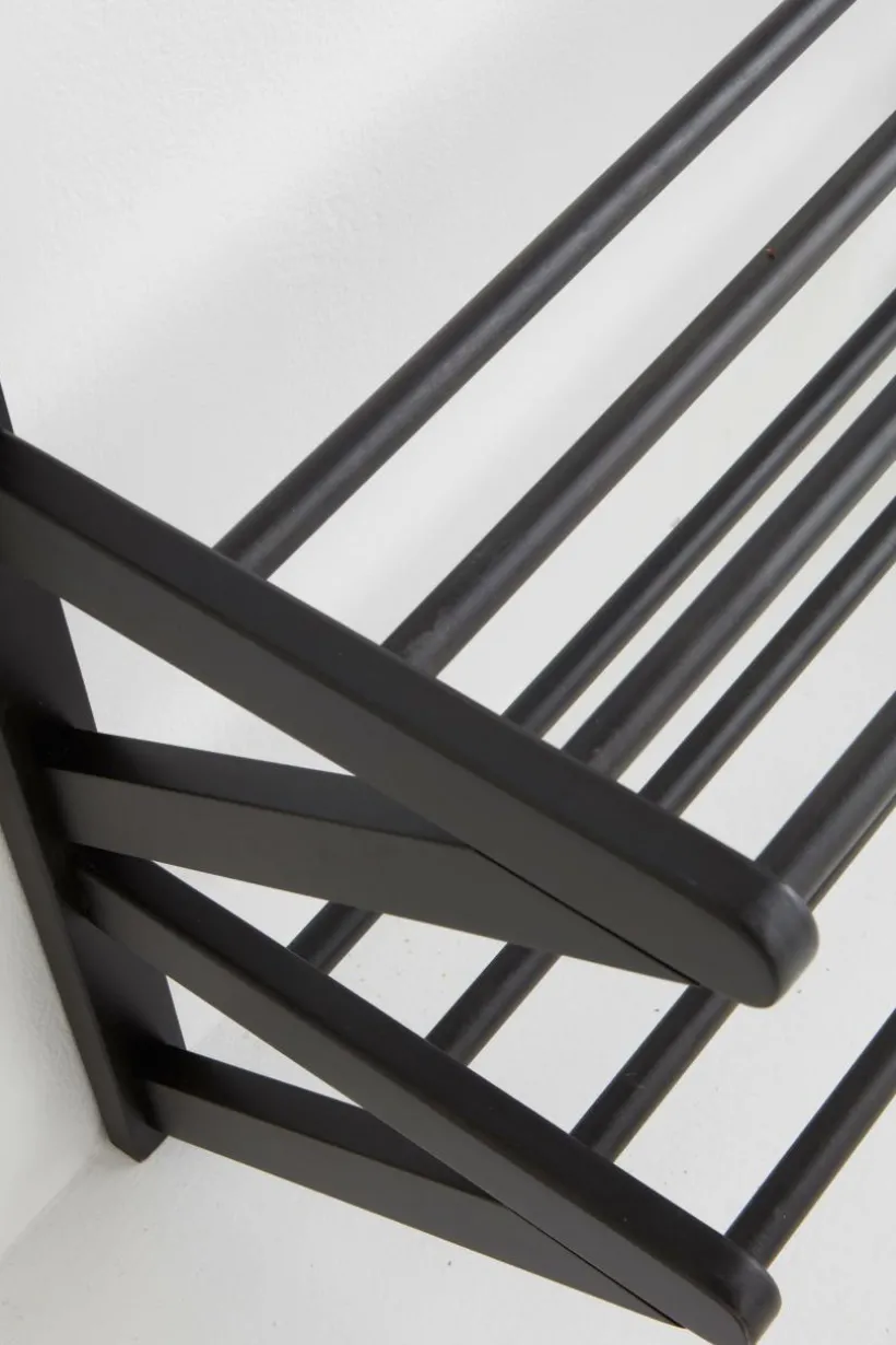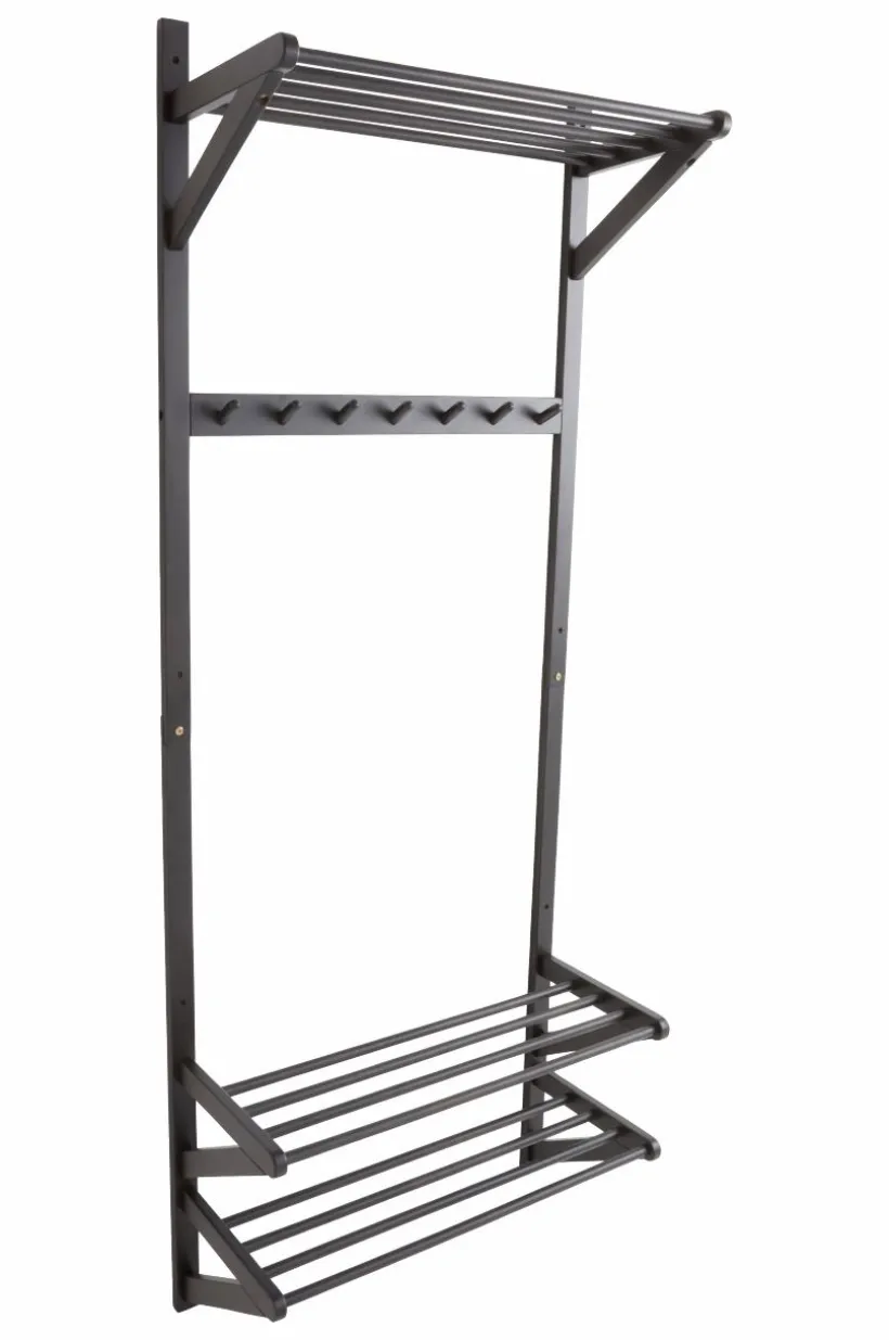 Klädhängaren COLE är av FSC-märkt furu med såpad yta. Klädhängaren har en hatthylla, en kroklist och två skohyllor. Kroklisten har sju raka hängare som är vinklade uppåt så att kläder och väskor hänger stabilt utan att halka av. Det fungerar fint att hänga galgar på yttersta rundstaven på hatthyllan (galgar medföljer ej). Klädhängaren skruvas fast på väggen på önskad höjd. Viss montering krävs. Monteringsanvisning medföljer.
