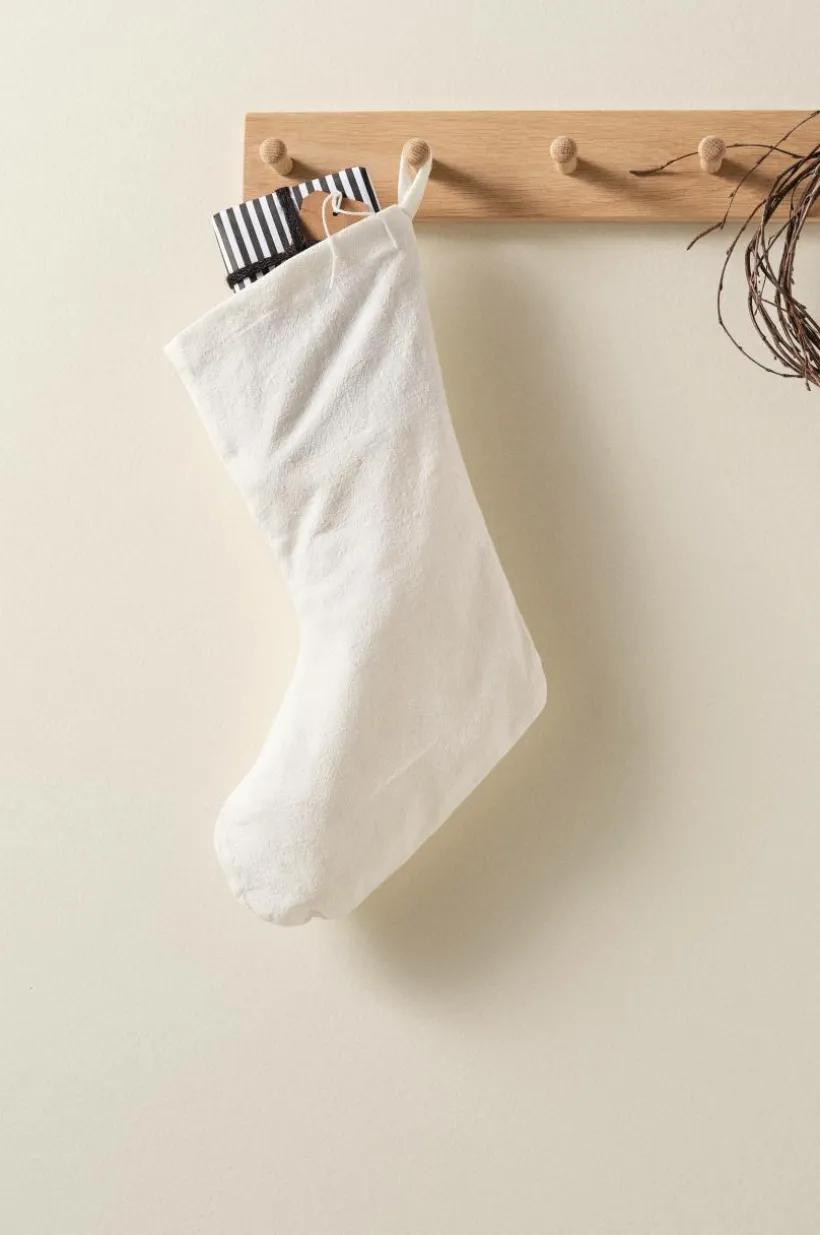 Enfärgad julstrumpa av bomull och lin. Att få julklapparna i en julstrumpa är en mysig tradition som skapar lite extra spänning och myskänsla. Julstrumpan har en hängare upptill, så du enkelt kan hänga upp den på önskad plats.