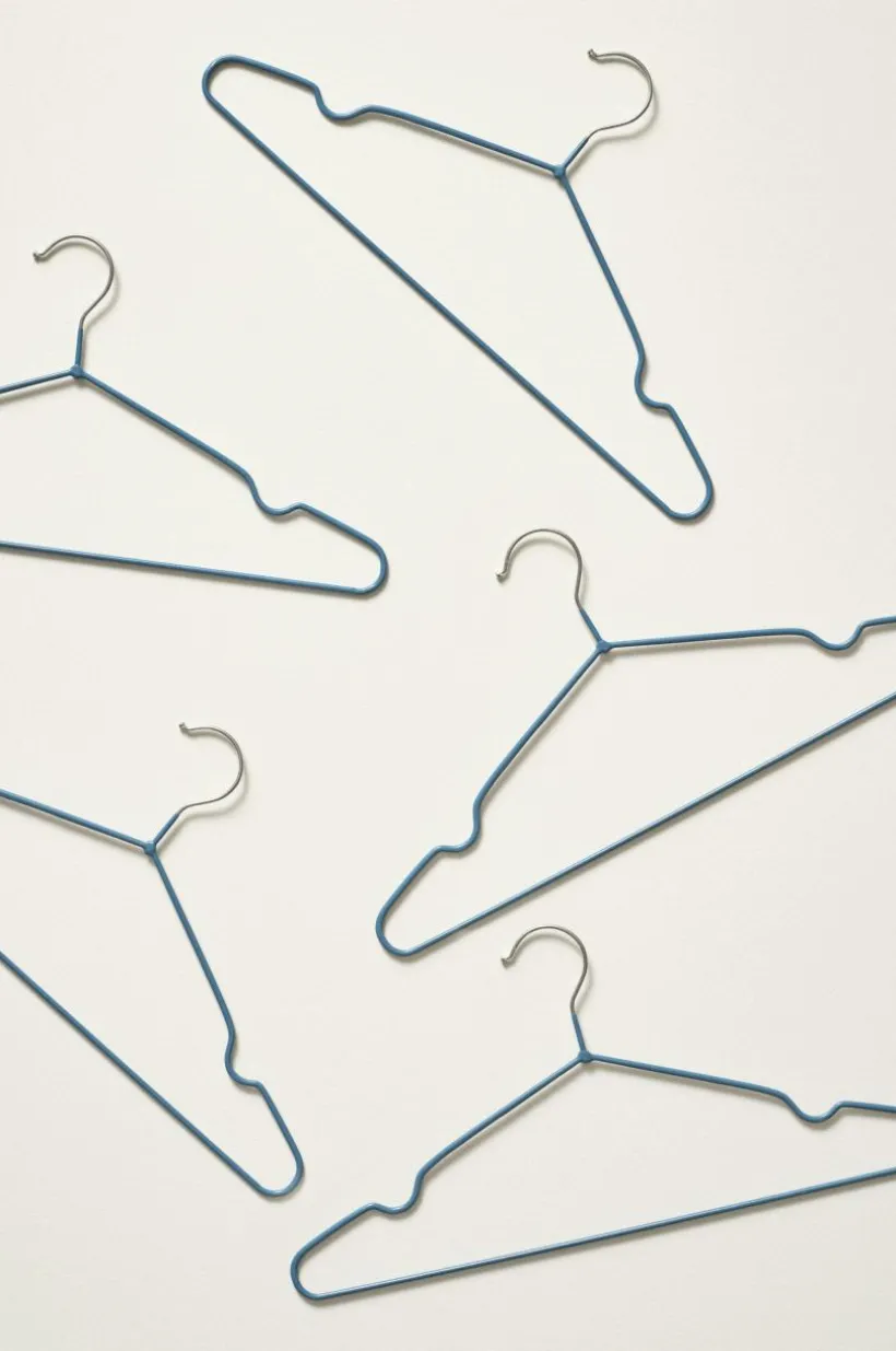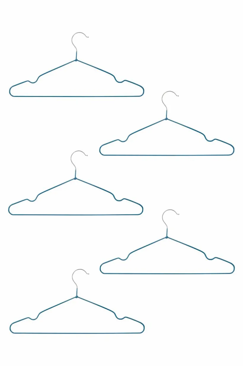 5-pack galgar av rostfritt stål med färgat plastöverdrag i glassiga färger. Galgarna är smidiga och tar liten plats i garderoben.