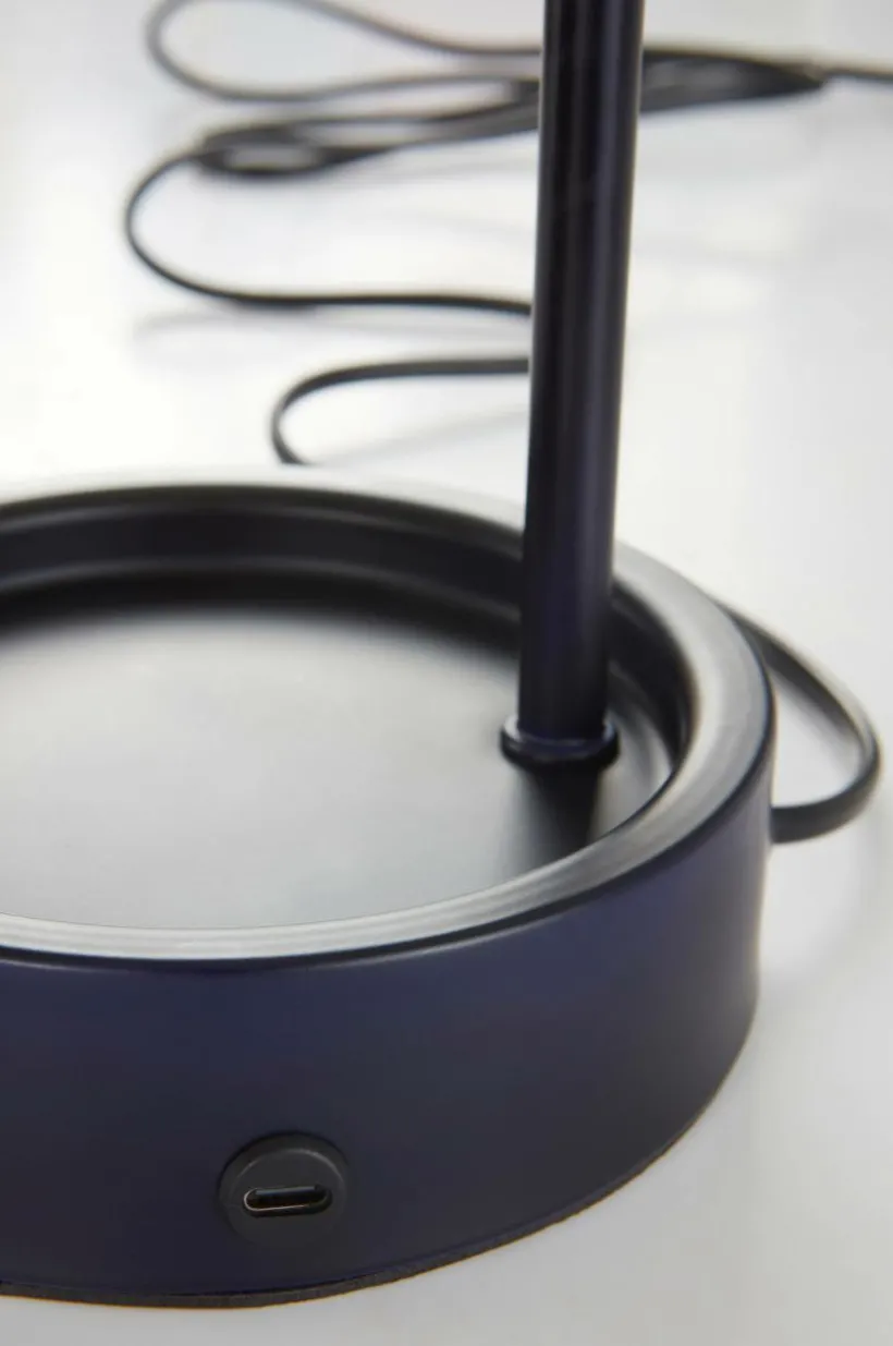 Finurlig skrivbordslampa för barn, komplett med ett praktiskt fack för små skatter. Den är tillverkad av målat järn och har en USB-C-port så att du enkelt kan ladda t.ex. din mobiltelefon. PVC-sladd med strömbrytare på lampfoten.