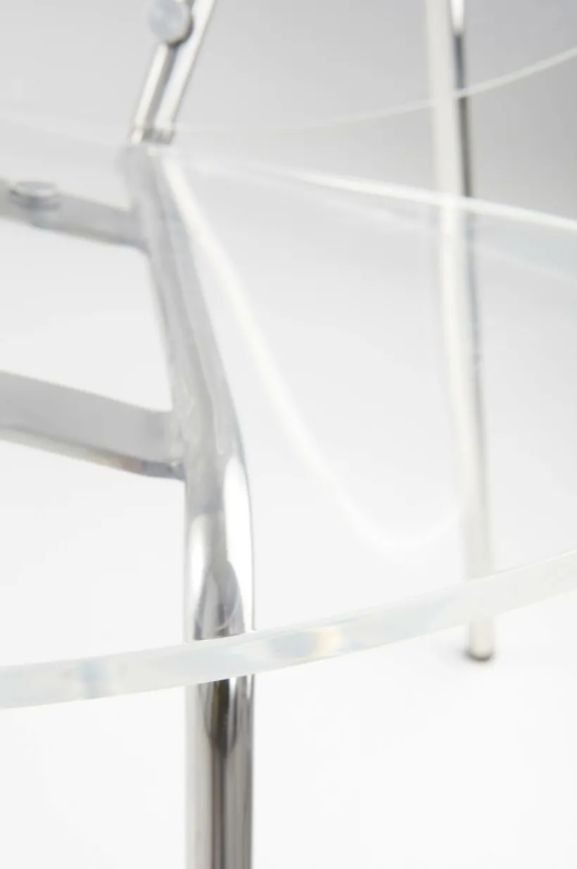 Loungestol av akrylglas med stomme av rostfritt stål. Stolen är i skön, futuristisk stil med mjukt rundad, transparent rygg och sits, stålrören som utgör den strömlinjeformade stommen är kromfärgade. CONWAY ger ett modernt intryck och känns retro på samma gång, matcha den efter din stil. Det kan bara bli rätt.