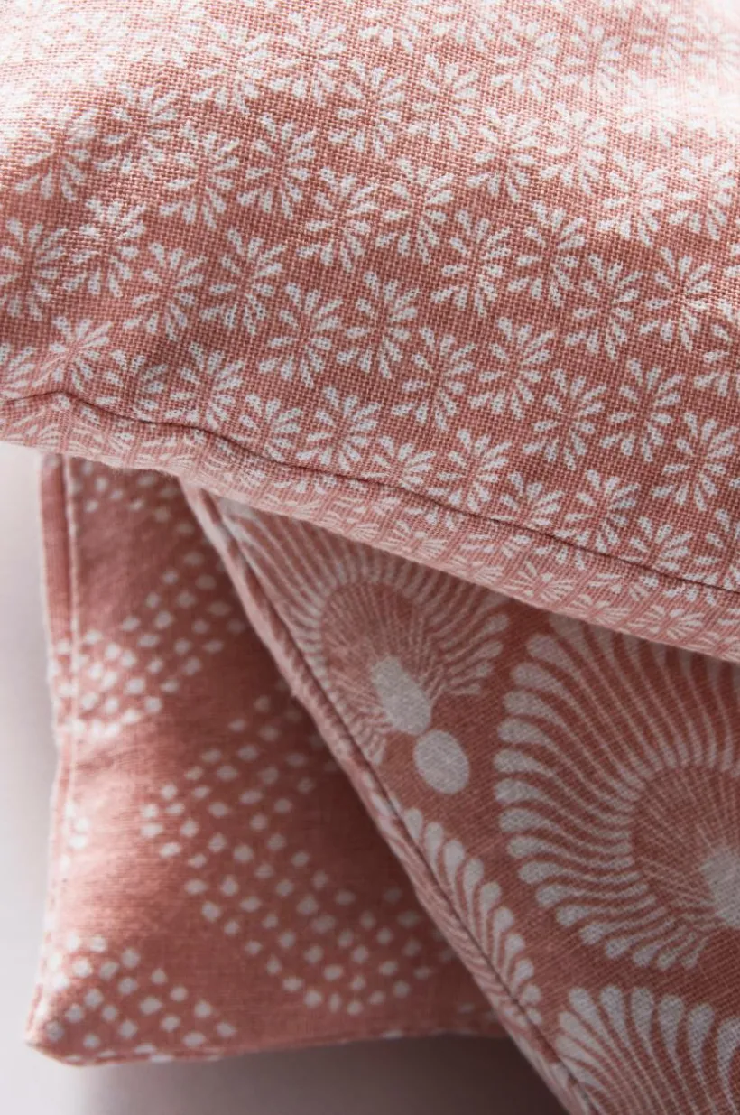 3-pack kuddfodral i bomull med tryckt mönster. Charmigt småmönstrat med en härlig lantlig känsla som passar in i många olika stilar. De tre kuddfodralen har olika mönsterbild i vitt på färgad botten. Dragkedja i nederkant.